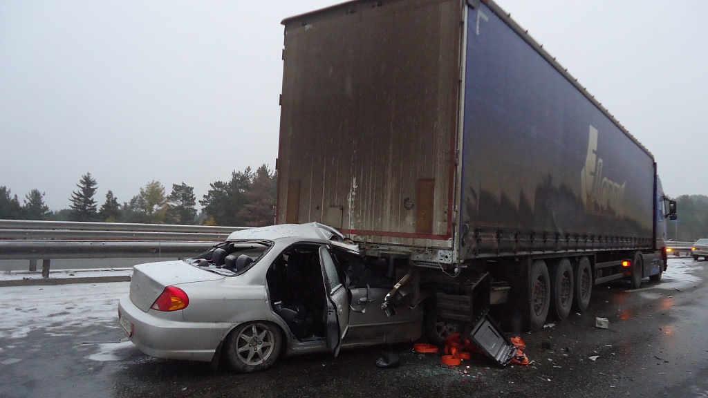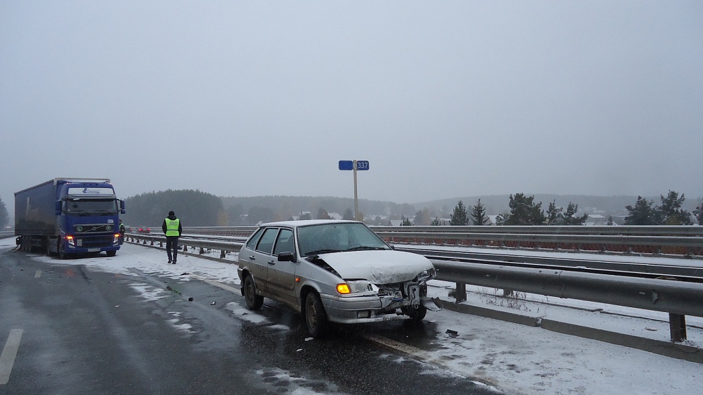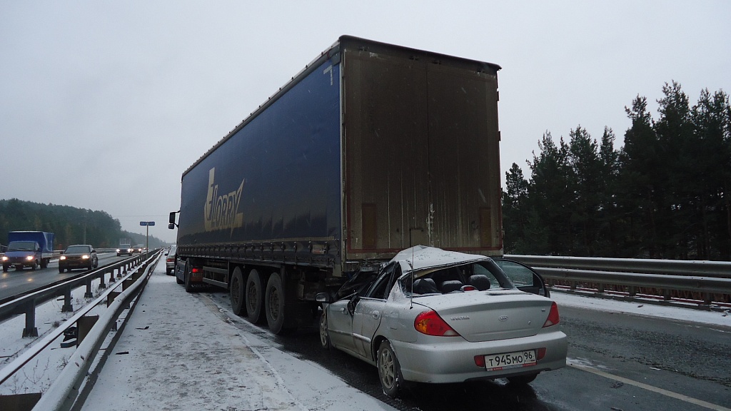 Как сообщили в пресс-службе ГИБДД Первоуральска, сегодня, 04 октября в 06.20 часов на 337 автодороги Пермь – Екатеринбург. Водитель грузовой а/м «Вольво» с полуприцепом (1963г.р., стаж 29 лет, житель г. Ревда), из-за образовавшегося впереди затора экстренно затормозил, после чего водитель а/м «КИА» (1960г.р.,стаж 17 лет, житель г. Ревда) двигаясь так же со стороны Перьми в сторону г. Екатеринбурга не верно выбрал дистанцию до впереди идущего ТС в результате совершил наезд в заднюю часть полуприцепа а/м «Вольво». Водитель «КИА» погиб на месте ДТП, 2 его пассажира (1972г.р. и 1988г.р. жители г. Ревды, мужчины) травмированы (1находился на переднем пассажирском сиденье, другой на заднем пассажирском сиденье). Оба пассажира доставлены в больницу с травмами разной степени тяжести. Все были пристегнуты ремнями безопасности. Через несколько минут после ДТП, водитель а/м «Тойота» неверно выбрал скорость конкретным дорожным условиям совершил наезд на правую боковую часть полуприцепа а/м «Вольво» в результате чего травмирован водитель а/м «Тойота» (1982г.р., житель Артемовского р-на, мужчина). В а/м так же находился пассажир (женщина) не пострадала. Движение по мосту было сразу перекрыто, автотранспорт направлялся в объезд через пос. Решеты, в результате, образовалась многокилометровая пробка. Сотрудники ГИБДД через местные СМИ оповестили водителей, направлявшихся из Первоуральска в сторону Екатеринбурга о ситуации на федеральной трассе, в результате часть водителей поехали по Старомосковскому тракту, где также столкнулись с затруднением в движении. В настоящий момент движение на трассе восстановлено.