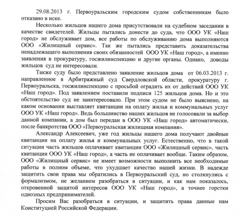 «Просим защитить нас от горстки одиозных предпринимателей». Жители Первоуральска жалуются на УК «Наш город» в облсуд