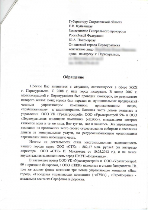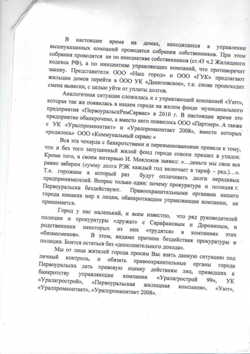 Все схвачено, за все заплачено. Жители Первоуральска жалуются на недобросовестные управляющие компании, несколько лет присваивающие их деньги себе. Кроме этого, уже не первый год тянется «эпопея» с незаконной вырубкой генетического резервата леса. Нарушения связывают с бывшим чиновником администрации Константином Болышевым. Все его «друзья» получили в «дар» жилфонд и ценный лесной резерват города в личное пользование. В данных уголовных делах также упоминаются первоуральский прокурор Рудых и начальник полиции Чирко, которые знают о нарушениях, но по необъяснимой причине медлят с принятием реальных процессуальных решений. В Первоуральске уже несколько лет происходят противозаконные вещи, на которые местные правоохранительные органы не обращают (или не хотят обращать) внимания. А все началось с кризиса жилищно-коммунального хозяйства. Передел жилфонда В конце 2007 года в городе прошел передел жилфонда. Муниципальное предприятие «ЖЭТ 3», отвечающее за сферу жилищно-коммунального хозяйства, обанкротилось. Не последнюю роль в этом сыграл тогдашний замглавы администрации города Константин Болышев. При его непосредственном участии жилфонд Первоуральска «распределили» между тремя частными управляющими компаниями – ООО «УК «Уралагрострой», ООО «Первоуральская жилищная компания» и ООО «Дом плюс». Формально все «приличия» соблюдены – был якобы проведен конкурс, хотя на деле выгодоприобретателями стали известные в Первоуральске граждане, которых все называют друзьями Болышева. Например, учредителем «Уралагростроя» и одним из учредителей ПЖК выступил один и тот же человек – близкий друг Болышева Дмитрий Сарафанов. В 2010 году Первоуральск оскандалился огромными суммами долгов местных управляющих компаний перед ООО «Свердловская теплоснабжающая компания». СТК опубликовала через СМИ суммы задолженностей за поставки тепла и горячей воды, превысившие 500 млн рублей. Со временем сумма достигла 1 млрд рублей. Такие огромные суммы возникли из-за того, что недобросовестные управляющие компании присвоили значительную часть денег за обслуживание домов в 2008–2009 годах. Из опубликованных СТК данных ясно, что большая часть долга возникла благодаря деятельности двух компаний – собственно «Уралагростроя», задолжавшего 176 млн рублей, и ПЖК с суммой долга в 214 млн рублей. Прокуратура города лихо взялась за разрешение ситуации и отчиталась, что вскоре накажет всех виновных, дошло даже до уголовного дела. Однако дружеские связи с чиновниками дали о себе знать: в том же году ряд управляющих компаний под общим названием «Уралагрострой» и ПЖК становятся банкротами (тем самым им «простились» все долги). На их месте тут же появились две новые УК – ООО «Наш город» и ООО «Городская управляющая компания». Слова «на их месте» следует понимать буквально – владельцы, руководители, адреса и телефоны «новых-старых» управляющих компаний не поменялись. Поменялось, по сути, лишь название. Уголовное дело, так бодро, казалось бы, начавшееся, вскоре было спущено на тормозах. Первоуральцев такой расклад, понятное дело, мало устраивал. Наиболее активные жители города начали писать жалобы, благодаря которым вроде бы как уже прекращенное уголовное дело вновь возобновляли. С 2010 по 2012 год оно возобновлялось пять раз. Однако особенного успеха от этого, впро