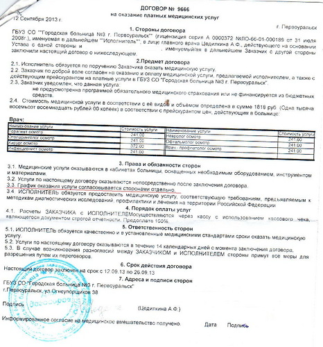 Причем медосмотр – услуга платная и в договоре между пациентом и Александром Цедилкиным черным по белому написано, что «график оказания услуги согласовывается сторонами отдельно».