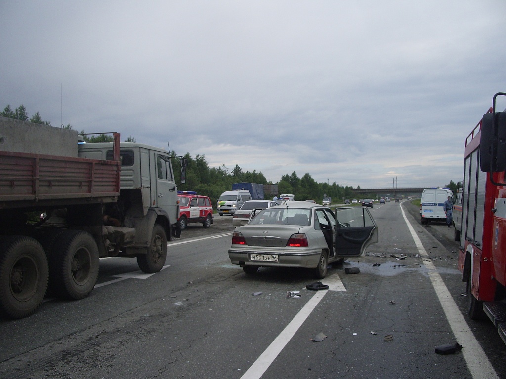 Сегодня, 25 июня 9:15 на 334 км автодороги Пермь-Екатеринбург произошло дорожно-транспортное происшествие с участием 3-х машин. Водитель автомобиля Дэу "Нексия" двигаясь со стороны Перми в направлении Екатеринбурга при перестроении допустил столкновение с попутно двигающимся транспортным средством, после чего Дэу выбросило на встречную полосу движения, где произошло лобовое столкновение с ВАЗ-2104. В результате ДТП водитель отечественной легковушки, мужчина 1949 г.р. погиб на месте, водитель и три пассажира Нексии госпитализированы в ГБ №1 г. Первоуральска.