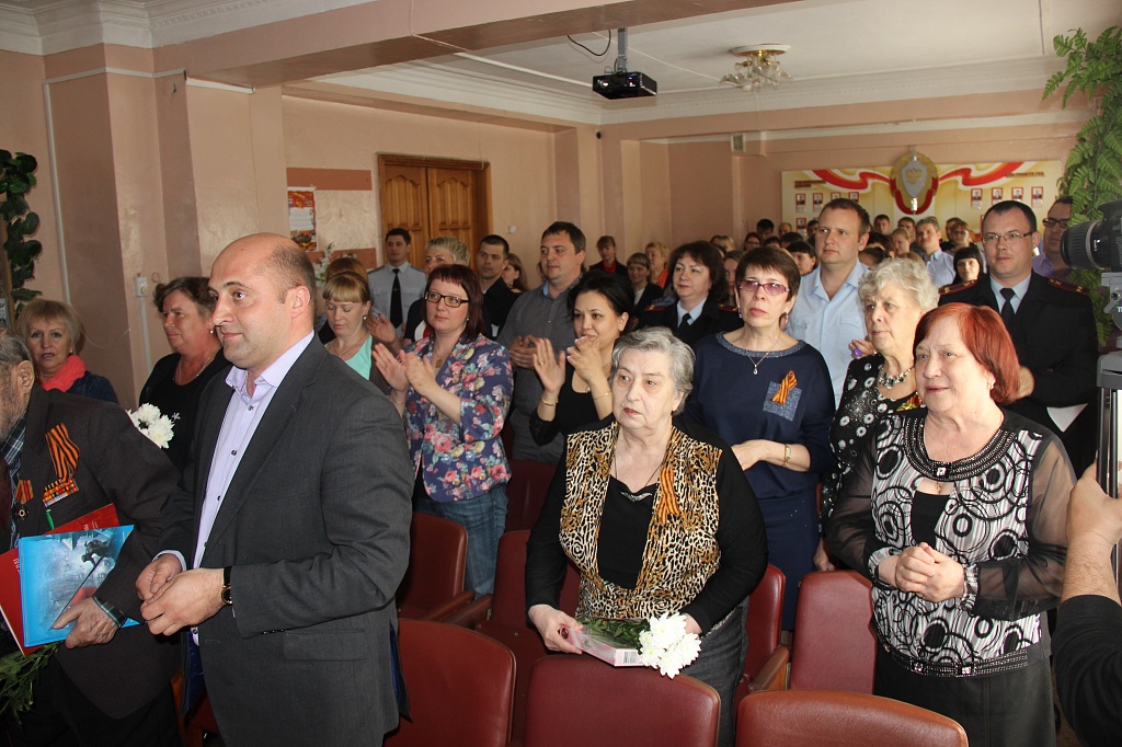 Ежегодно, по доброй традиции в Отделе МВД России по городу Первоуральску проходит праздничный концерт, посвященный одному из самых светлых и любимых праздников россиян – Дню Победы в Великой Отечественной войне. В этому году торжественное мероприятие прошло особенно интересно и душевно. Ведущая концерта, старший инспектор отделения по работе с личным составом, майор внутренней службы Елена Пьянкова поприветствовала всех гостей мероприятия и с трогательной речью обратилась ко всем присутствующим с теплом и гордостью вспомнить всех тех, кто не вернулся с войны, кто не дошел до дня Победы. «Четыре долгих года шла ужасная, тяжелая, Великая Война. На протяжении 1418 дней, вечеров, ночей не прекращалось сражение за свою Родину. Практически 20 миллионов погибших — это если каждого из погибших почтить минутой молчания страна будет в полном безмолвии 32 года», - отметила ведущая. Далее, по сложившейся традиции, слово было передано начальнику Отдела МВД России по городу Первоуральску полковнику полиции Сергею Чирко, который от всей души поздравил коллег и ветеранов с наступающим великим Днём Победы и искренне поблагодарил всех ветеранов за их славный подвиг. Главным, гостем на мероприятии стал единственный ветеран органов внутренних дел и ветеран Великой Отечественной войны Владимир Александрович Храмых, проживающий на территории города Первоуральска. В 1940 году Владимир Александрович был призван на службу в ряды Вооруженных сил. Служил на границе с Германией. С первых дней войны стоял на страже Родины. В 1942 попал в окружение. Четыре месяца выходил из окружения. Был ранен. В 1944 году пришел служить в органы внутренних дел. Вышел в отставку в звании подполковника внутренней службы. За героизм и мужество, за вклад в освобождение нашей Родины от фашистских захватчиков Указом президента Российской Федерации от 21.12.2013 г. Владимир Александрович награждается юбилейной медалью «70 лет Победы в Великой Отечественной войне 1991-1994 гг.». Начальник отдела Сергей Чирко вручил ветерану государственную награду и книгу о сотрудниках органов внутренних дел Свердловской области, принимавших участие в Великой Отечественной войне. Необходимо отметить, что накануне памятной даты представителями Общественного совета при ОМВД ветерану был сделан приятный сюрприз - на фасаде многоквартирного дома, где живет Владимир Александрович, была установлена красивая табличка с надписью «В этом доме живет ветеран ВОВ и ветеран МВД Храмых Владимир Александрович. Спасибо за Победу!». В свою очередь Владимир Храмых прочел для всех присутствующих автобиографию в стихах собственного сочинения, где отразил весь свой жизненный путь. Зрители со слезами на глазах слушали повествование ветерана. Председатель Совета ветеранов отдела, майор милиции в отставке Фаина Носарева, ежедневно переживая чаяния и тревоги каждого ветерана, вышла на сцену, поздравила и поблагодарила всех ветеранов и членов их семей, выразила свою безграничную признательность за совершенный подвиг.