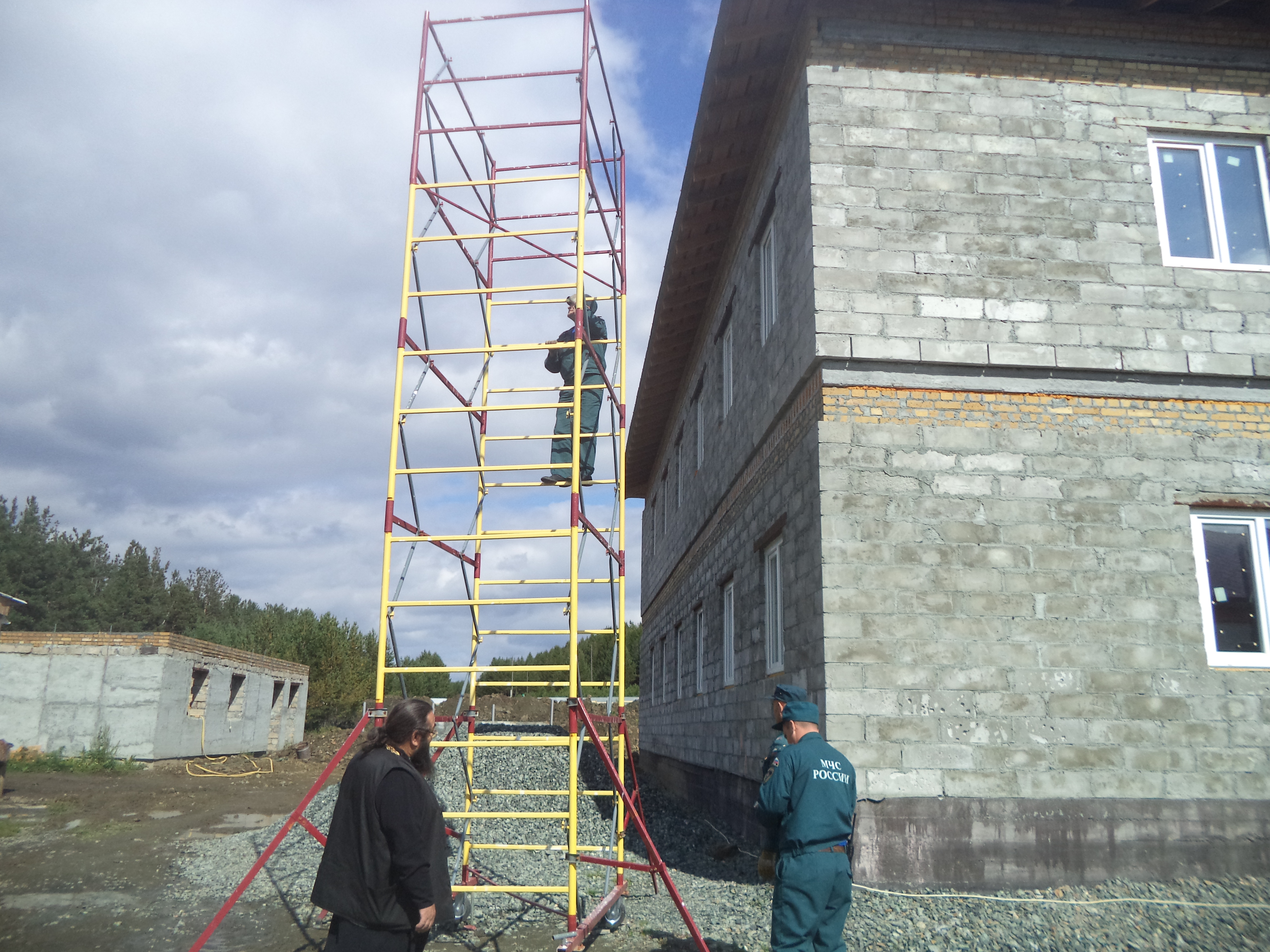 Здание воскресной школы при храме Во имя святой великомученицы Екатерины г.Первоуральска стремительно растёт, а рабочих рук на выполнение подсобных работ не хватает. Здесь и пригодилась помощь личного состава 2 караула 47ПЧ 10 ОФПС по Свердловской области. На этот раз (а это уже не первая помощь приходу) настоятель храма Во имя святой великомученицы Екатерины протоиерей Иаков Айсин благословил пожарных выполнить свойственную их роду профессии работу – разобрать строительно-монтажную лестницу, ведущую на 2й этаж здания школы. Ребятам не привыкать к работе на высоте, с задачей они справились успешно, сообщает ОНД ГО Первоуральск. Материалы по теме: