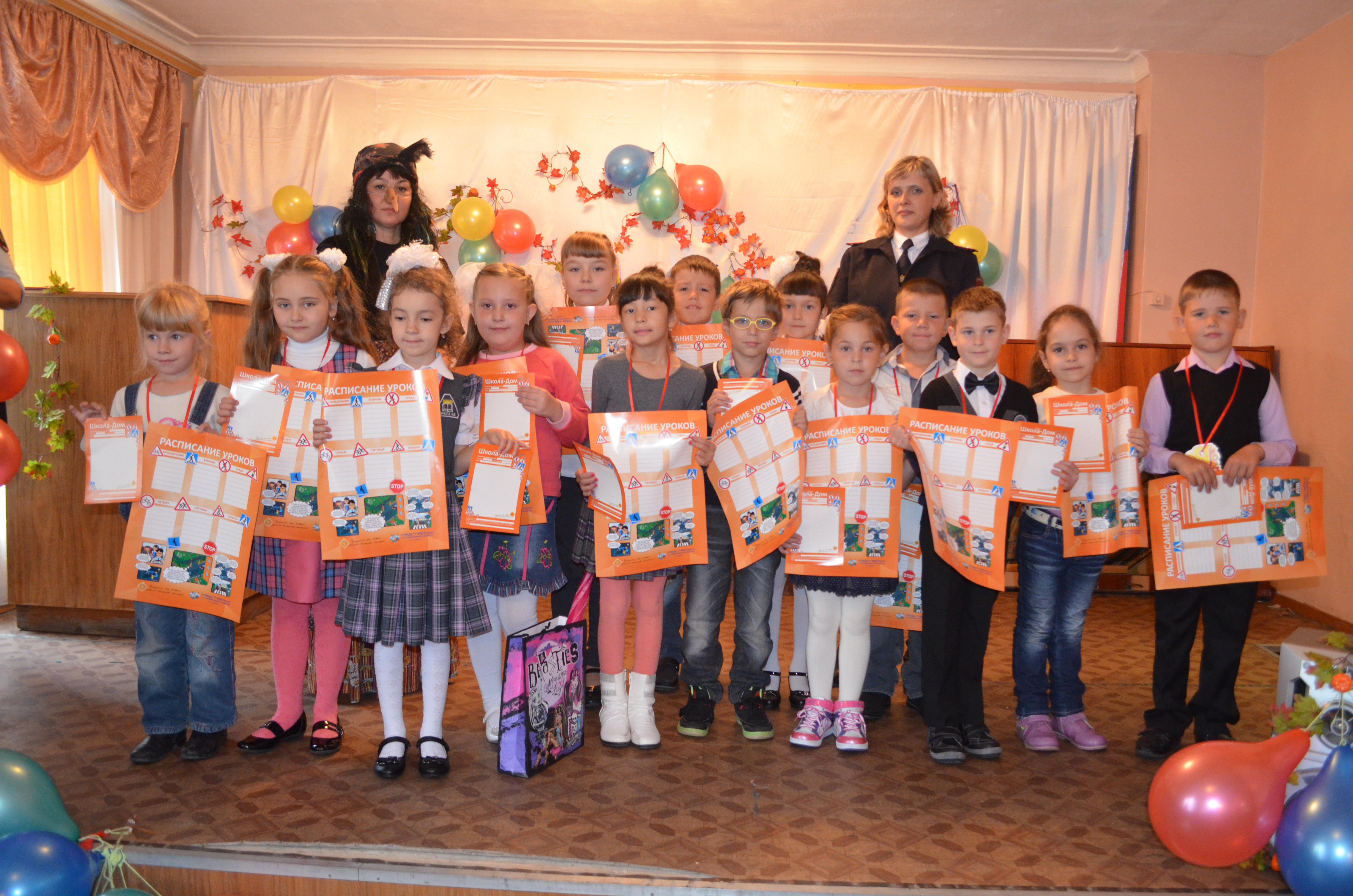 Накануне, в актовом зале здания Отдела МВД России по городу Первоуральску проведен замечательный праздник для детей сотрудников, которые в первый раз сядут за школьные парты. С напутственным словом перед детками и их родителями выступил начальник ОМВД России по городу Первоуральску полковник полиции Олег Владимирович Грехов, пожелав детям успехов в учебе, отличных оценок, больших достижений и конечно безопасной дороги в школу. Для будущих первоклассников сотрудниками ГИБДД в игровой форме была организована развлекательная программа «Путешествие по городу Первосветофорску». Инспектор по пропаганде безопасности дорожного движения Надежда Бикбаева в костюме Бабы-Яги на протяжении всего путешествия пыталась запутать детей, но ребята смогли показать свои знания безопасного поведения на улицах и дорогах города, грамотно отвечая на подготовленные задания. В конце путешествия детей ждали специально подготовленные подарки – плакаты с расписанием на дорожную тематику и маршрутные листы «Дом-школа-дом». Еще одним приятные моментом на торжественном мероприятии стало награждение участников городского конкурса по безопасности дорожного движения, который проходил в течение лета на телеканале «Евразия». С экранов телевизоров дети обращались к участникам дорожного движения с призывами быть внимательными на улицах и дорогах, уважать себя и других, общими усилиями сделать дороги города безопасными. Всем ребятам, участвующим в конкурсе, были вручены благодарности и призы. Не остались без внимания и дети погибших сотрудников, они также были приглашены на детский праздник, где получили от руководства первоуральской полиции приятные подарки и сладкие сюрпризы. Приглашенные на праздник детишки остались довольны увлекательным мероприятием и полезными подарками. Отдел МВД России по городу Первоуральску Материалы по теме: