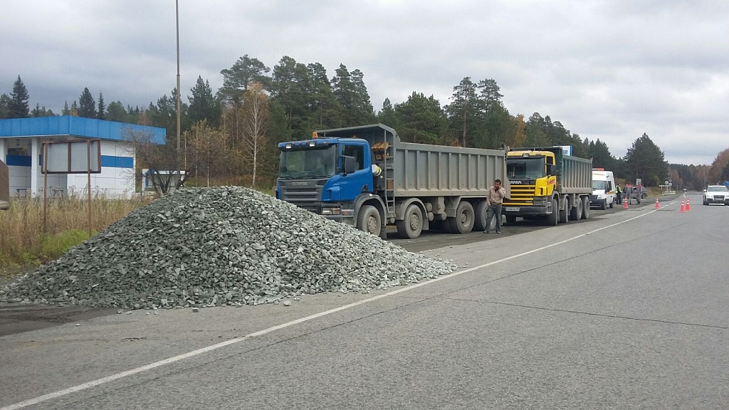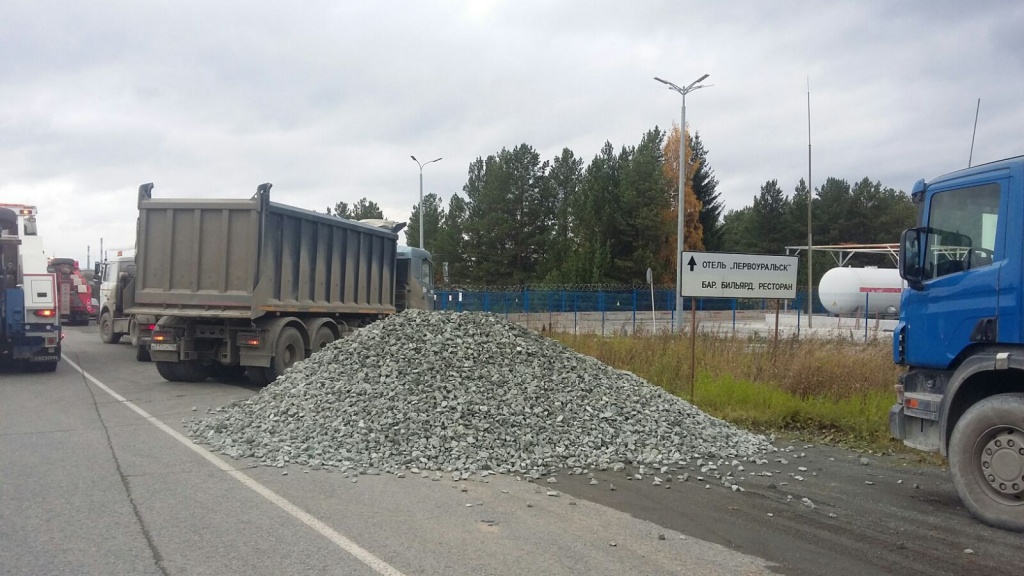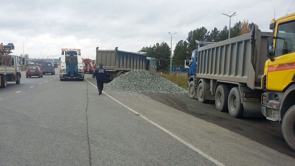 Под Первоуральском водитель грузовика высыпал щебень на дорогу
