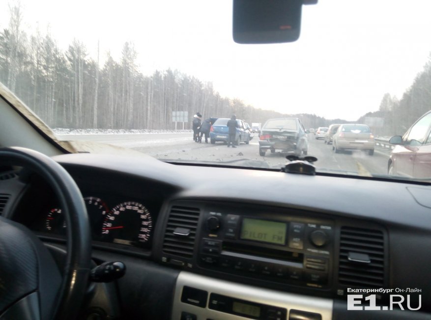 На трассе под Первоуральском столкнулись пять машин, сообщает портал E1.RU – Мы ехали по Пермской трассе. Между Первоуральском и Зелёным мысом в 7:20 произошла авария. В ней участвовали минимум пять машин. Одну прям очень сильно расхлестало, – сообщила E1.RU очевидец Марина Задорина. – Столкнулись ВАЗ-2114, ВАЗ-2112, Renault Logan, Suzuki Grand Vitara и Nissan X-trail, – рассказал E1.RU очевидец Сергей Правденков. – Всё произошло из-за того, что ВАЗ-2112 кто-то подрезал, и водитель, включив аварийку, начала притормаживать, и в неё все врезались. В результате замяло сильно три машины. В Renault у пассажира разбита голова, у пассажирки Nissan – сотрясение мозга. Водителя ВАЗ-2114 зажало в салоне – двери не открывались. У него было что-то с шеей. Очень быстро приехали скорая и ГИБДД.