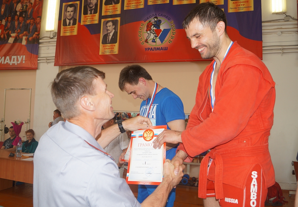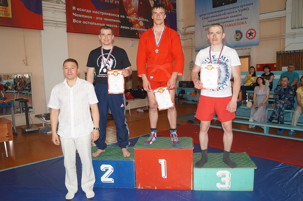 27 мая в спортивном комплексе «Уралмаш» г. Екатеринбурга состоялся чемпионат ГУФСИН России по Свердловской области по самбо, посвященный памяти кавалера Ордена Мужества Анатолия Завьялова. В соревнованиях приняли участие сотрудники исправительных учреждений пенитенциарной системы Среднего Урала, в том числе команды аппарата Главного управления, СИЗО-1, СИЗО-5 (г. Екатеринбург), отдела специального назначения «Россы», управления по конвоированию (г. Первоуральск), ИК-3 (г. Краснотурьинск), ИК-19, ИК-26 (г. Тавда), ИК-46 (г. Невьянск), ИК-47, КП-59 (г. Каменск-Уральский), ИК-54 (г. Новая Ляля), ИК-63 (г. Ивдель), ЛИУ-58 (п. Надымовка), СИЗО-4 (г. Ирбит). Как рассказали в пресс-службе ГУФСИН России по Свердловской области, турнир по самбо, посвященный памяти Анатолия Завьялова, проходил в этом году в седьмой раз. Открыл соревнования временно исполняющий полномочия начальника ГУФСИН России по Свердловской области полковник внутренней службы Олег Давиденко. На мероприятие была приглашена мама погибшего офицера Любовь Николаевна. Ее поблагодарили за то, что она воспитала сына-героя и вручили букет цветов. В результате напряженных поединков победу в командном первенстве одержали самбисты управления по конвоированию, второй стала команда спецназа ГУФСИН «Россы», а третье место заняли спортсмены ИК-47. В личном зачете первые места в своих весовых категориях завоевали Даниил Сабирзянов (57 кг, ОСН «Россы»), Алексей Егоров (62 кг, ИК-47), Ярослав Сандин (68 кг, управление по конвоированию), Петр Рыскин (74 кг, ОСН «Россы»), Владимир Николаев (82 кг, управление по конвоированию), Александр Доровских (90 кг, ОСН «Россы»), Дмитрий Торгашов (до 100 кг, СИЗО-5) и Александр Куликов (ИК-47). Победителям и призерам были вручены почетные грамоты и медали, а командам-победительницам - кубки. Наша справка: оперативный дежурный дежурной части Кировградской воспитательной колонии капитан внутренней службы Анатолий Анатольевич Завьялов проходил службу в уголовно-исполнительной системе с мая 1996 года. В октябре 2007 года при пресечении массовых беспорядков в Кировградской колонии, несмотря на полученные травмы, капитан внутренней службы Завьялов предотвратил незаконные действия осужденных, дав время личному составу караула отдела охраны и дежурной смены воспитательной колонии подготовиться к пресечению массовых беспорядков и эвакуации дежурных смен учреждения. За самоотверженный поступок и отвагу, проявленные при выполнении служебного долга в условиях, сопряженных с риском для жизни, капитан внутренней службы Анатолий Завьялов награжден Орденом Мужества посмертно.