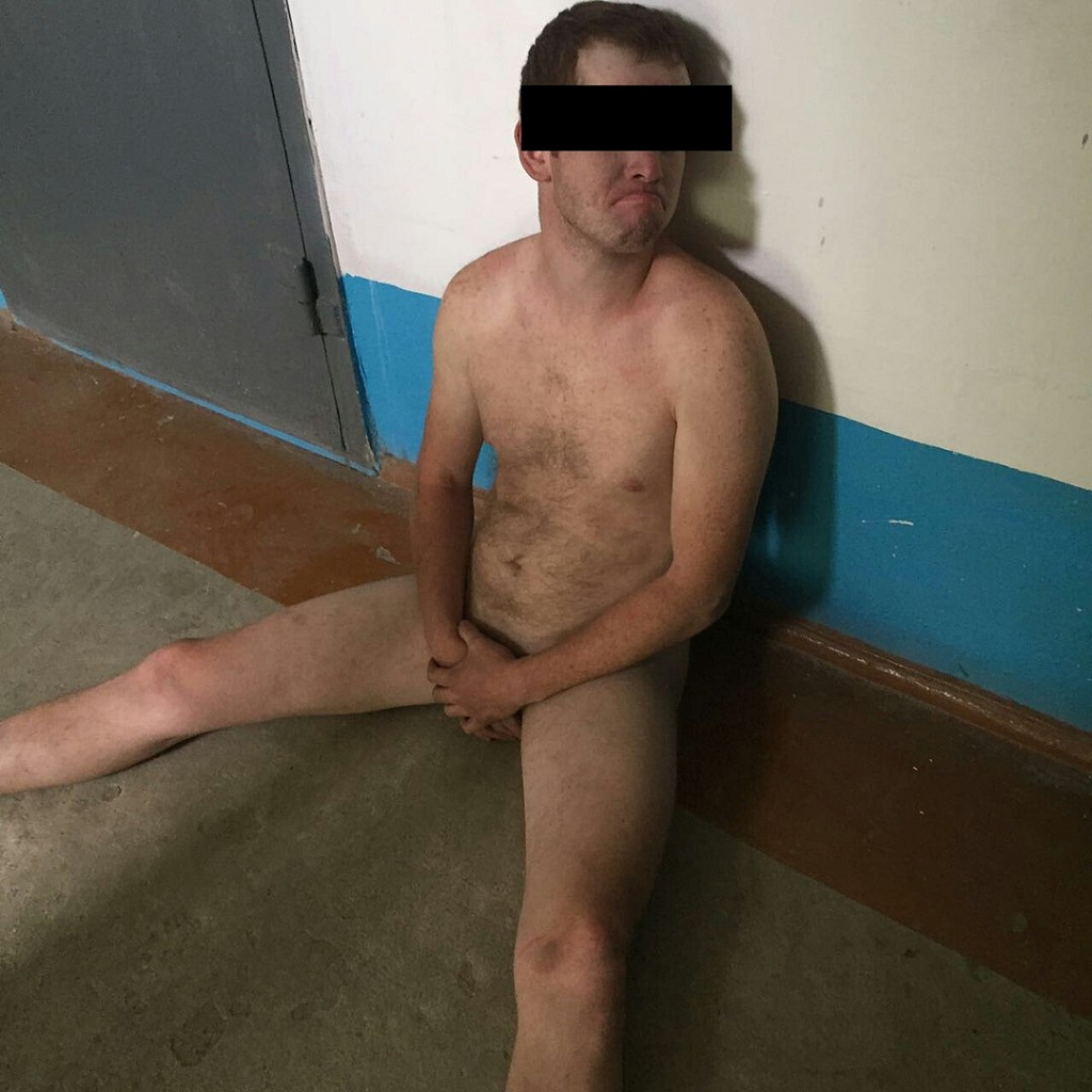 Во вторник, 7 июня, пользователи в паблике ВКонтакте «Подслушано Первоуральск 18+» выложили фотографии молодого человека, который в неадекватном состоянии сидит на лестничной площадке в подъезде. При этом он абсолютно голый и босиком.
