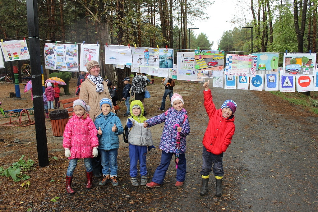В начале нового учебного года в ГО Первоуральск проведена серия профилактических мероприятий, цель которых – помочь детям в период адаптации после летних каникул вспомнить правила дорожного движения. Одним из таких мероприятий стала выставка детских рисунков и фотографий, которая состоялась в парке культуры и отдыха. Можно сказать, что эта выставка - результат работы всего ГО Первоуральск. Инициатива провести мероприятие в таком формате принадлежит ГИБДД города, в организации же приняли участие управление образования, школы, детские сады, добровольная народная дружина, руководство и работники парка, инициативные родители... в общем, всем миром. Не смотря на пасмурную и временами дождливую погоду, выставка не осталась без внимания. На выставке было представлено более двухсот рисунков и фотографий. Работы с интересом рассматривали и обсуждали как дети, так и взрослые. Ребята делись друг с другом впечатлениями, рассказывали, как они готовились к этому мероприятию, как придумывали сюжеты и воплощали их в жизнь. Здесь же состоялся большой интерактив с ромашкой, в рамках всероссийской эстафеты «Дорога – символ жизни!», в котором могли поучаствовать все желающие. Самыми же активными участниками эстафеты стали воспитанники и педагоги МАДОУ №39. Ромашка была необычная - из воздушных шаров! Ребята сами, а кто не умеет, с помощью воспитателя писали на лепестках – воздушных шариках, что нужно сделать для безопасности на дорогах. Кроме цветка из воздушных шаров, все желающие могли обзавестись ромашкой на щечке – аквагрим в виде символа всероссийской эстафеты. Остается пожелать всем нашим дорогим художникам, их родителям, педагогам и просто жителям города, чтоб правила дорожного движения оберегали Вас на дорогах! ОГИБДД города Первоуральска. Материалы по теме: