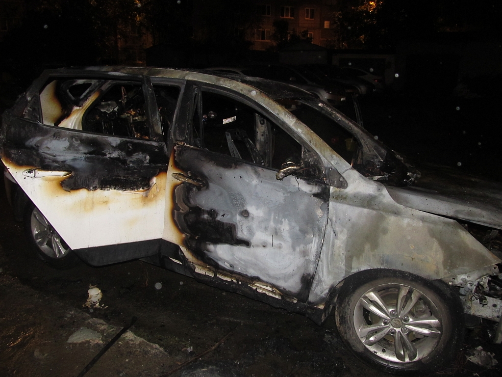 Минувшей ночью на проспекте Космонавтов у дома № 22/16 произошло возгорание автомобиля марки Hyundai AX 35, принадлежащего 39-летней местной жительнице. Как рассказали Первоуральск.РФ в пресс-службе ОМВД России по г. Первоуральску, в ходе первоначальных проверочных мероприятий установлено, что ночью сработала автомобильная сигнализация, хозяйка машины вышла на улицу, обнаружила задымление, попыталась с помощью огнетушителя локализовать возгорание, но, к сожалению, не успела. В результате у кроссовера полностью выгорел моторный отсек и салон, площадь возгорания составила 4 кв.м. Специалистами установлено, что причиной возгорания стал умышленный поджог. В настоящее время сотрудниками полиции по данному факту проводится проверка, устанавливаются все обстоятельства и возможные очевидцы произошедшего, устанавливается сумма ущерба. По результатам поверки будет принято решение о возбуждении уголовного дела.