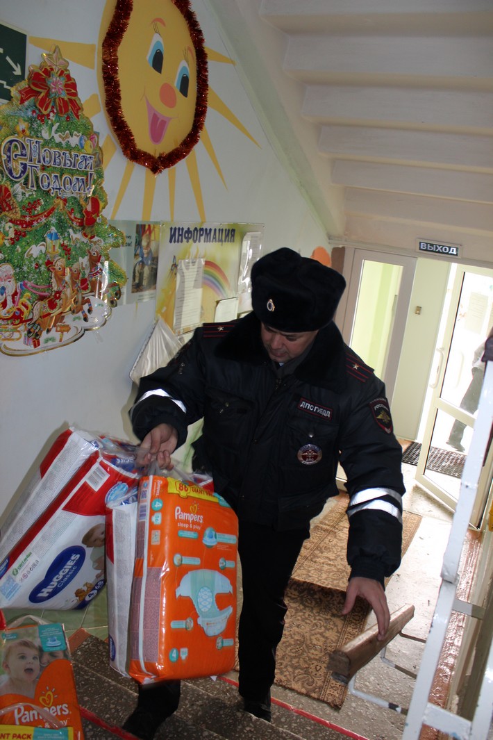 В канун самого любимого среди россиян зимнего праздника первоуральские полицейские проводят мероприятия, посвященные Новому году. По доброй традиции полицейский Дед Мороз и Снегурочка посетили все подшефные детские дома и сделали приятные сюрпризы своим подопечным. Череда поздравлений началась с Дома Малютки, куда наведались с подарками и поздравлениями сотрудники ГИБДД и привезли малышам, оставшимся без попечения родителей, огромное количество подгузников. Стражи порядка приобрели подарки на собранные средства личного состава Госавтоинспекции и на средства спонсорской помощи, оказанной одной из транспортных компаний города. Еще полицейские совместно с коллегами из Всероссийского добровольного пожарного общества посетили Первоуральский детский дом. Детишки помладше рассказали Деду Морозу и Снегурочке замечательные новогодние стихи, в свою очередь, сказочные герои не только вручили ребятам подарки и сладости, но и напомнили о мерах безопасности в праздничные дни. Инспектор по делам несовершеннолетних капитан полиции Ольга Азанова вручила ребятам «Волшебные письма от полицейского Деда Мороза» и красочные буклеты, разработанные МВД России, в котором содержатся несколько волшебных заклинаний по мерам безопасности, которые помогут защитить детей от различных неприятностей. Инспектор по пропаганде безопасности дорожного движения ГИБДД лейтенант полиции Вера Вишнякова в образе Снегурочки напомнила детям о мерах безопасности на улицах и дорогах города. Особое внимание ребят обращено на недопустимость катания с горок, наледей и накатов, выходящих на проезжую часть. Дети сотрудников полиции также не остались без внимания. Накануне Дед Мороз и Снегурочка заехали в гости с подарками ко всем малышам прямо домой. Детки пели, танцевали, рассказывали стихи и с удовольствием фотографировались со сказочным волшебником и его внучкой. Как отмечают сами полицейские, принимающие личное участие в подобных мероприятиях, всегда приятно дарить детям радость и видеть их благодарные и счастливые лица. Отдел МВД России по городу Первоуральску