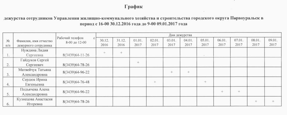 В период новогодних каникул в Первоуральске будут дежурить специалисты городского УЖКХиС