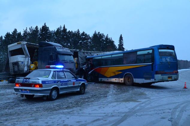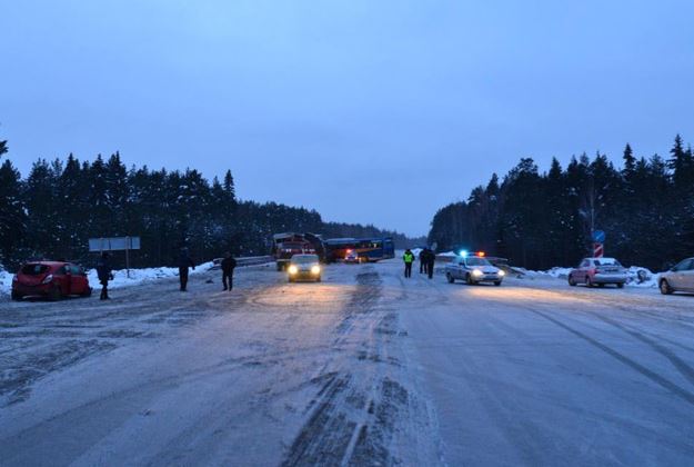 На уральской трассе автоледи спровоцировала ДТП с пассажирским автобусом и двумя грузовиками. В результате аварии пострадали 10 человек. Как сообщил NDNews.ru руководитель пресс-службы ГУ МВД РФ по Свердловской области Валерий Горелых, авария произошла сегодня на 317 километре трассы Пермь – Екатеринбург. Участниками ДТП стали автобус, двигавшийся по маршруту №151 «Ревда – Екатеринбург», легковой автомобиль «Опель» и два грузовика – «Вольво» и «Рено». По предварительным данным, в аварии травмы различной степени тяжести получили 10 человек, из них 8 – пассажиры автобуса. Наиболее серьезные травмы у водителей автобуса и «Опеля». Сотрудники полиции установили, что легковым автомобилем «Опель» управляла автоледи. Женщина попыталась обогнать фуру, при этом она не смогла соблюсти интервал между транспортными средствами и задела левое колесо автобуса, оно от столкновения лопнуло. В результате автобус выбросило на встречную полосу движения. Для установления более подробных и точных обстоятельств дорожно-транспортного происшествия на место ЧП выехал заместитель начальника областной ГИБДД полковник полиции Алексей Габдорахманов. Среди пострадавших есть 16-летняя девочка, понадобится ли ей и другим раненым госпитализация, сейчас решают медики травмпункта Ревды», – сообщил официальный представитель главка. По итогам начавшейся проверки органами внутренних дел будет принято соответствующее процессуальное решение. ФОТО предоставлены Валерием Горелых
