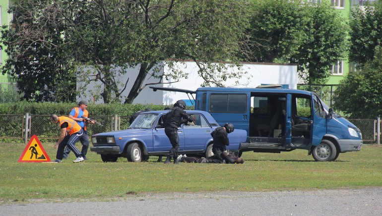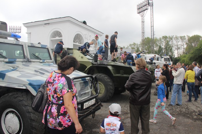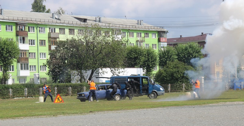 Взрывы, высадка десанта из БТРа, тушение загоревшегося легкового автомобиля, выступление полицейских-кинологов со служебными собаками, оказание экстренной медицинской помощи и еще много много интересного!