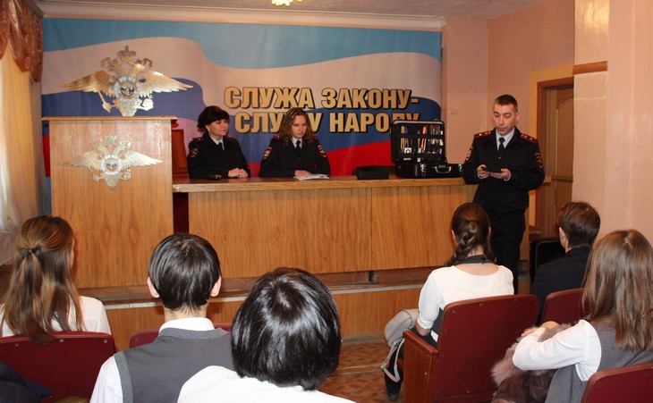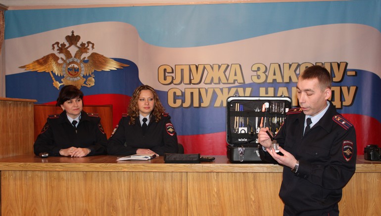 Ежегодно, в преддверии Российского дня студенчества МВД России проводит общероссийскую акцию «Студенческий десант», во время которой знакомит учащихся с работой полиции. Первоуральский отдел МВД России всегда с удовольствием принимает участие в этом мероприятии. Так, в рамках акции старшеклассники лицея № 21 посетили здание Отдела МВД России по городу Первоуральску, где для них была организована увлекательная экскурсия, которую провела старший специалист по работе с личным составом майор внутренней службы Елена Пьянкова. Десятиклассники уже сейчас серьезно озадачены выбором будущей профессии, поскольку принимают участие в проекте по профессиональной социализации старшеклассников, в рамках которого активно посещают различные предприятия и организации, где наглядно знакомятся с разными специальностями. Именно эти ребята планируют связать свою судьбу с юриспруденцией. Встреча полицейских и учащихся началась в помещении дежурной части, с которой начинается любой отдел полиции. Начальник дежурной части майор полиции Андрей Алымов рассказал ребятам об основных функциях и задачах, возложенных на сотрудников данного подразделения, показал гостям непосредственно зал оперативного дежурного, специальное помещение для задержанных и фойе, где размещена вся необходимая информация для граждан. В помещении для задержанных полицейские наглядно продемонстрировали ребятам станцию оперативной проверки, предназначенную для проверки по отпечаткам пальцев граждан, доставленных в отдел полиции по различным основаниям. В фойе отдела экскурсовод Елена Васильевна рассказывала и показывала лицеистам стенды с фотографиями сотрудников, имеющих государственные награды, ветеранов отдела, действующих сотрудников, особенно отличившихся по службе и мемориальную доску памяти сотрудников отдела, погибших при исполнении служебных обязанностей. Далее старшеклассники проследовали в актовый зал, где для них подготовили выступления представители разных служб. Заместитель начальника экспертно-криминалистического отдела майор полиции Юрий Дрокин рассказал гостям как эксперты-криминалисты собирают и исследуют различные следы с мест преступлений, какие существуют виды криминалистических экспертиз и какие из них выполняют в Первоуральском отделе МВД. Юрий Викторович продемонстрировал присутствующим главный инструмент любого эксперта - криминалистический чемодан, показал и подробно рассказал о его содержимом, начиная от фотоаппарата, заканчивая слесарным инструментом. Именно данная тема, как выяснилось позже, вызвала у будущих юристов особый интерес. В заключение, эксперт-криминалист рассказал о государственной услуге по добровольной дактилоскопической регистрации и ее пользе, немного остановился на информации об учебных заведениях, где можно освоить эту замечательную и интересную профессию. Старший участковый уполномоченный полиции майор полиции Татьяна Пинежина выступила перед аудиторией будущих юристов с информацией о деятельности своей службы, подробно рассказав о правах и обязанностях участковых уполномоченных, и отметила, что деятельность этой службы, в первую очередь, направлена на защиту прав и свобод граждан и профилактику преступности на вверенном административном участке. Татьяна Васильевна разъяснил