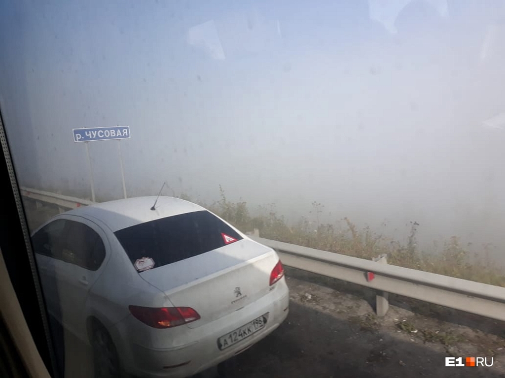 Огромную пробку под Первоуральском вызвал туман, идущий от реки Чусовой