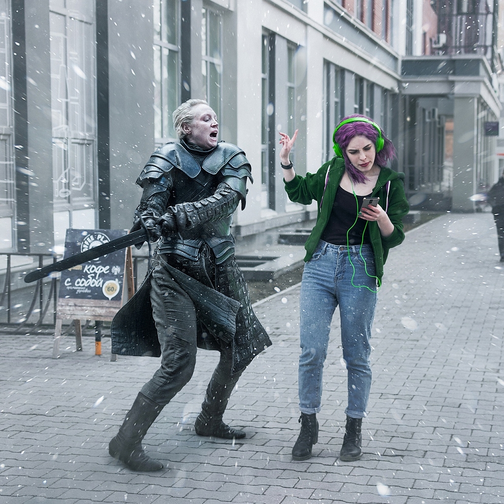 В преддверии новой серии МегаФон предложил блогерам Александре Чертуловой и Родиону Балкову представить, что делали бы герои саги в уральской действительности. В результате сотрудничества фотографа и графического художника родились необычные работы – герои саги гуляют по улицам, кормят голубей, едут в троллейбусе, а драконы пролетают над городскими крышами. Фантастические образы показывают, с каким нетерпением зрители ждут новые серии, как самозабвенно смотрят их с помощью быстрого интернета и смартфона в любом месте.