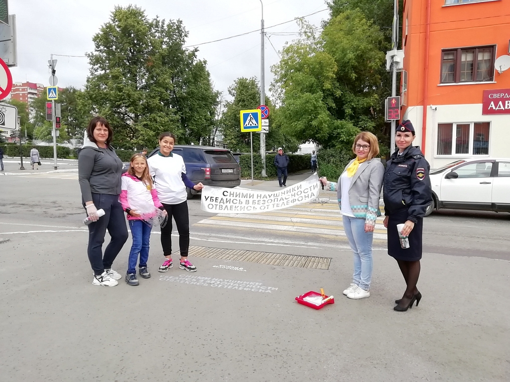 Сегодня, в центре города Госавтоинспекция Первоуральска совместно с ассоциацией молодежи «МОПСы», Молодой гвардией и волонтёрами благотворительного фонда «Доброе Дело» провели акцию «Безопасный переход». Цель акции – предупреждение дорожно-транспортных происшествий с участием пешеходов и велосипедистов, ведь как показывает статистика, большинство ДТП происходят по вине самих пешеходов. Именно поэтому участники акции, «вооружившись» краской, валиками, кисточками, баллончиками и трафаретами направились к самым оживленным пешеходным переходам города, чтобы нанести яркие призывы: «Сними наушники!», «Возьми ребёнка за руку!», «Пешеход, убедись в безопасности перехода!», «Велосипедист, по «зебре» только пешком!» и другие. Все призывы направлены на популяризацию ответственного поведения, как взрослых, так и детей на дороге и формирование правильного, культурного поведения. Каждый участник дорожного движения должен помнить о том, что даже при переходе пешеходного перехода оснащенного светофором, пешеход в первую очередь обязан остановиться, убедиться в безопасности и при переходе проезжей части отказаться от использования различных гаджетов. Велосипедист, в свою очередь, перед тем как перейти проезжую часть, обязан спешиться с велосипеда! Сотрудники Госавтоинспекции надеются, что подобные надписи привлекут внимание пешеходов и велосипедистов, и заставят их задуматься о правильном и безопасном переходе дороги с соблюдением всех Правил дорожного движения. ГИБДД г.Первоуральска