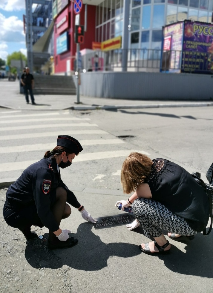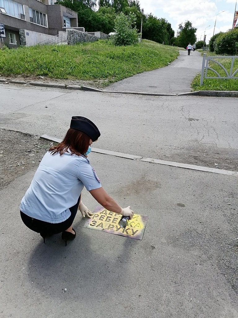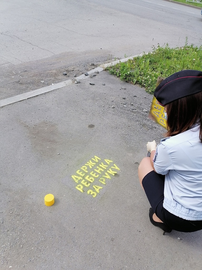 ГИБДД Первоуральска продолжает наносить надписи на асфальте