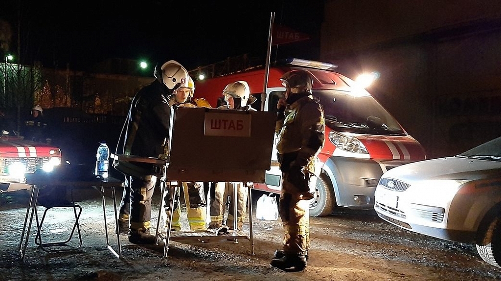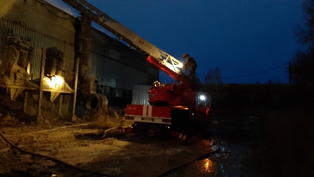 2 ноября в 15:00 поступило сообщение о пожаре в здании ангара на площади 4300кв.м., расположенного на производственной площадке в г.Первоуральске на ул.Сантехизделий. В ангаре находился цех по производству гофротары, где в большом количестве была бумага и картон. Большая горячая загрузка поспособствовала быстрому распространению огня. На месте работали пожарные подразделения, прибывавшие для усиления из соседних городов области. Всего было задействовано 24 единицы пожарной техники, 81 человек личного состава. Для координации действий сил и средств на месте пожара был развернут штаб пожаротушения. Для мониторинга зоны пожара и координации действий сил и средств задействован беспилотный летательный аппарат МЧС России. Кроме того в район пожара для контроля за состоянием воздуха прибыла передвижная инженерно-химическая лаборатория специализированной пожарно-спасательной части из г.Екатеринбурга. Под воздействием высокой температуры произошло частичное обрушение кровли ангара. Спустя 7,5 часов в 22.30 открытое горение было ликвидировано. Проливка и разборка сгоревших конструкций продолжается. Причина пожара устанавливается, на месте работают пожарные дознаватели.