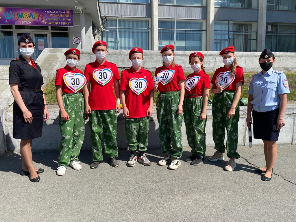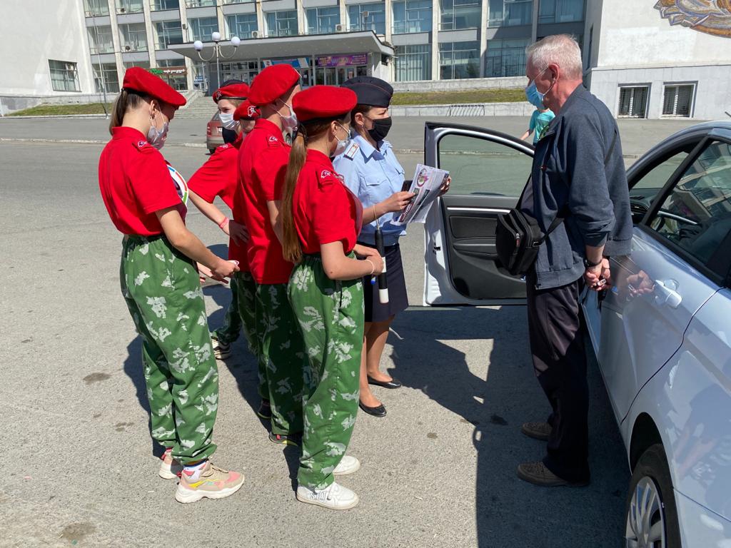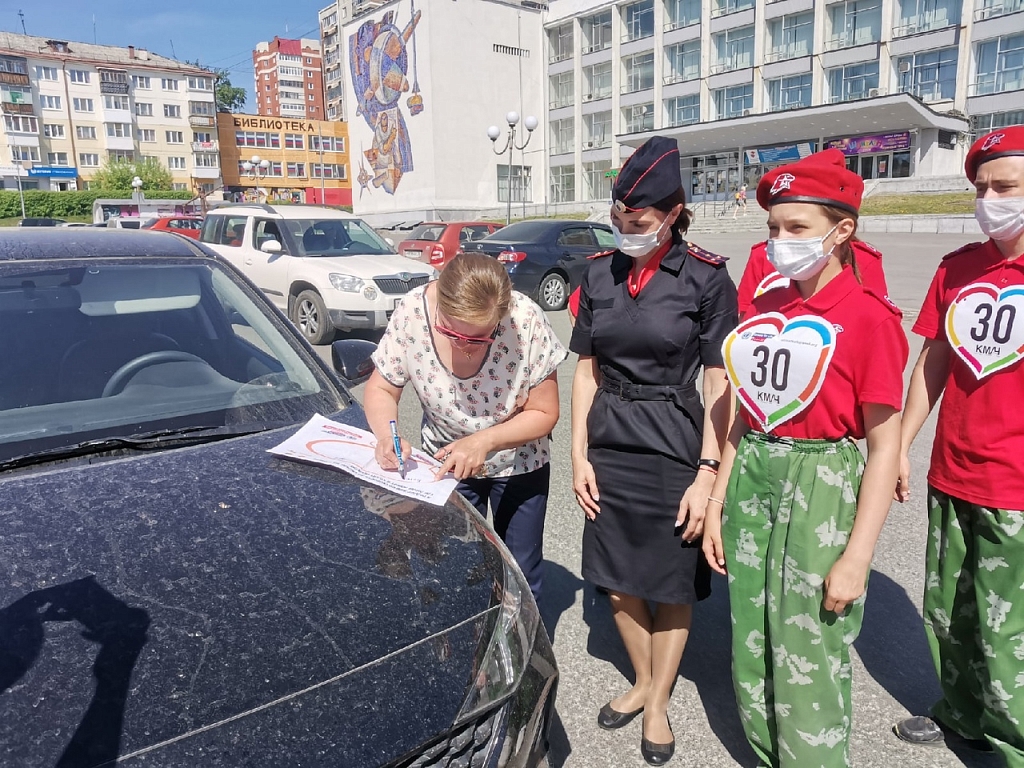 "Снижаем скорость - сохраняем жизнь!" - под таким девизом ГИБДД Первоуральска и Юнармейцы провели акцию на площади города