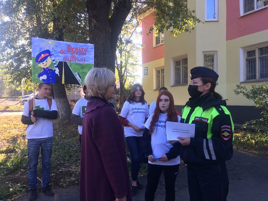 В Свердловской области 6 сентября объявлен «Единым днём дорожной безопасности». В рамках которого, на улицах Первоуральска сотрудники Госавтоинспекции, совместно с инспекторами по делам несовершеннолетних и участковыми уполномоченными полиции в усиленном режиме несли службу и выявляли нарушения в области дорожного движения. Во всех школах города, с целью разъяснения правил поведения на дороге, для учащихся прошли классные часы и различные мероприятия по безопасности дорожного движения, в которых активное участие приняли сотрудники Госавтоинспекции. Также сегодня, инспекторы по пропаганде безопасности дорожного движения совместно со студентами «Первоуральского политехникума» провели акцию «Двигайся безопасно», цель которой - повышение безопасности дорожного движения, профилактика ДТП с участием пешеходов, а также пропаганда взаимоуважения среди участников дорожного движения. С яркими плакатам участники акции вышли к ближайшему пешеходному переходу близи политехникума, чтобы проконтролировать соблюдение Правил дорожного движения пешеходами. Участники акции проводили с пешеходами профилактические беседы по безопасности дорожного движения и вручали пешеходам тематические буклеты о необходимости соблюдения Правил дорожного движения. Сотрудники ГИБДД наедятся, что сегодня все учащиеся не только вспомнили Правила дорожного движения, но и повысили уровень дорожной грамотности.