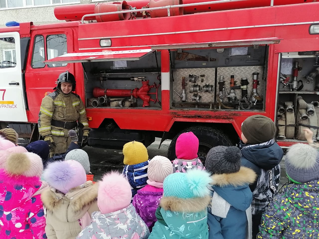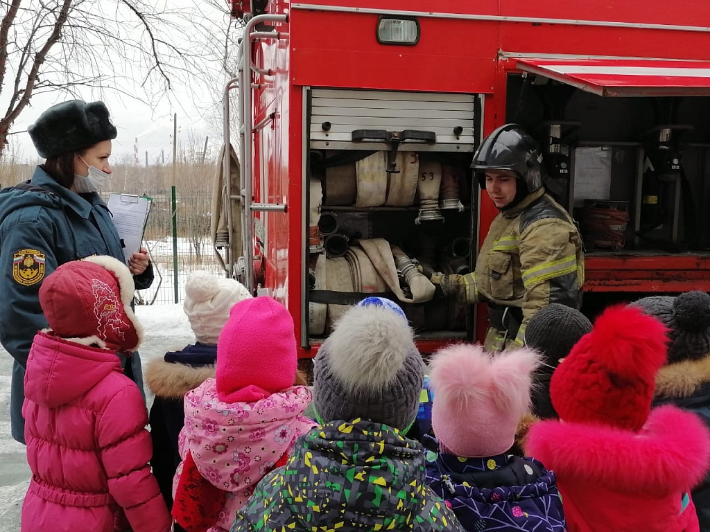 На базе Муниципального дошкольного образовательного учреждения «Детский сад №55» в п. Магнитка прошла встреча воспитанников детского сада с представителями 10 пожарно-спасательного отряда ФПС ГПС Главного управления МЧС России по Свердловской области. Уже совсем близки новогодние и рождественские праздники, которых с нетерпением ждут взрослые и дети. Чтобы праздники прошли с пользой и без происшествий, в детских садах и школах Свердловской области сотрудники МЧС проводят профилактическую операцию под названием «Новый год». В ходе профилактической операции инспектор отделения организации службы, подготовки и пожаротушения Юлия Кашапова провела беседу с воспитанниками «Детского сада № 55». Инспектор рассказала ребятам, какие правила пожарной безопасности необходимо соблюдать в период новогодних праздников, как нужно правильно наряжать ёлку и вешать праздничную гирлянду. Если соблюдать все эти правила, то наряженная ёлочка станет украшением праздника, подарит радость и поднимет настроение. Затем, пожарный 47 пожарно-спасательной части Никита Сенцов рассказал воспитанникам как устроена пожарная автомашина, какой аварийно-спасательный инструмент применяют бойцы для спасения пострадавших на пожаре или других чрезвычайных ситуациях, рассказал про боевую одежду пожарного. В заключении мероприятия огнеборец дал возможность ребятам примерить на себя настоящую каску пожарного, этот момент вызвал большой восторг у ребят. Несмотря на свой юный возраст, малыши хорошо знают «тревожные» номера телефонов – «101» и «112».