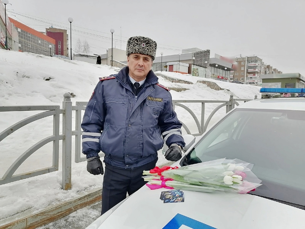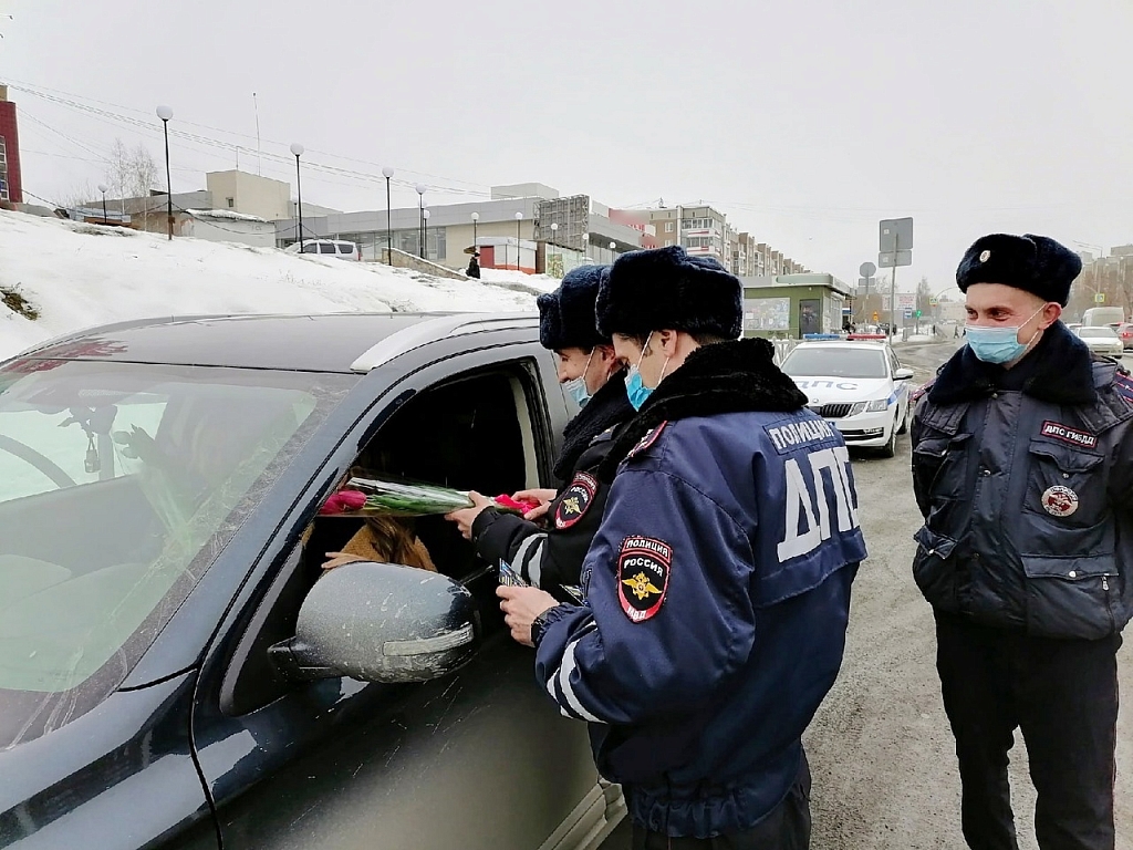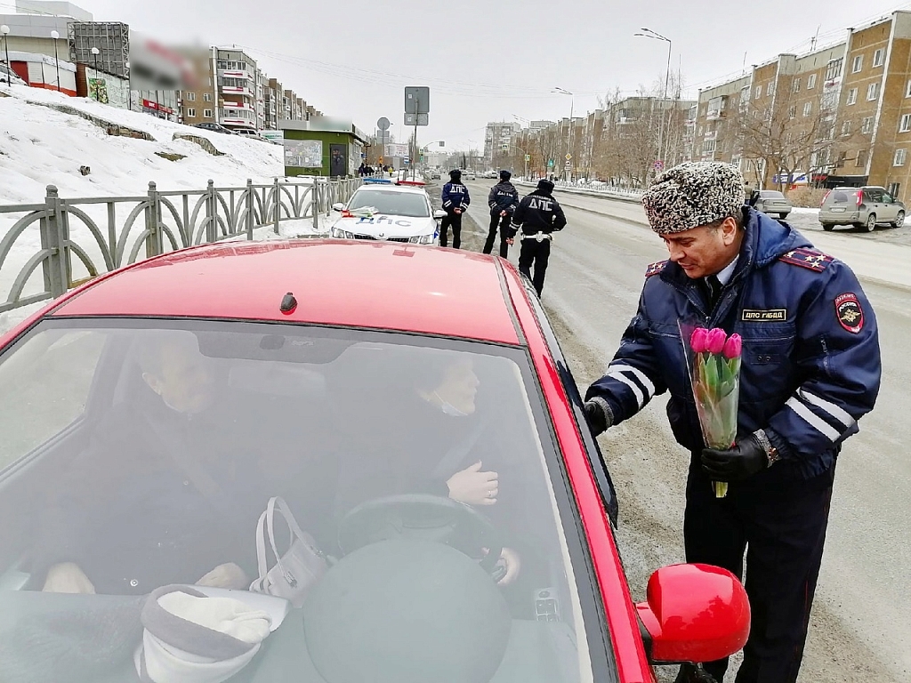 В Первоуральске сотрудники Госавтоинспекции поздравили женщин с 8 Марта