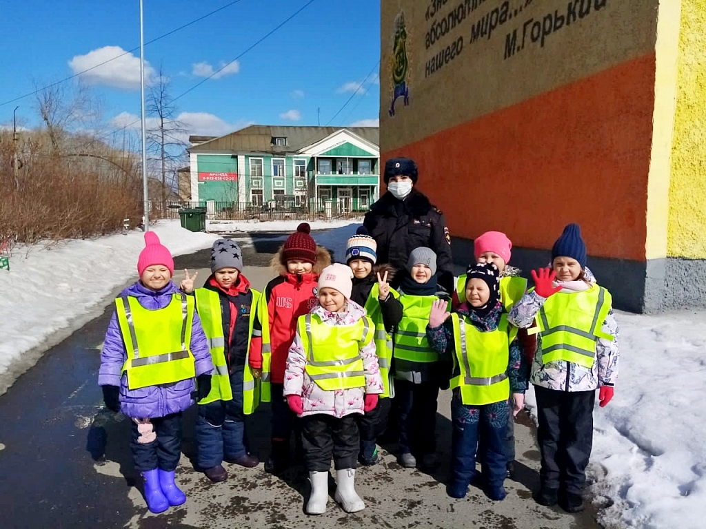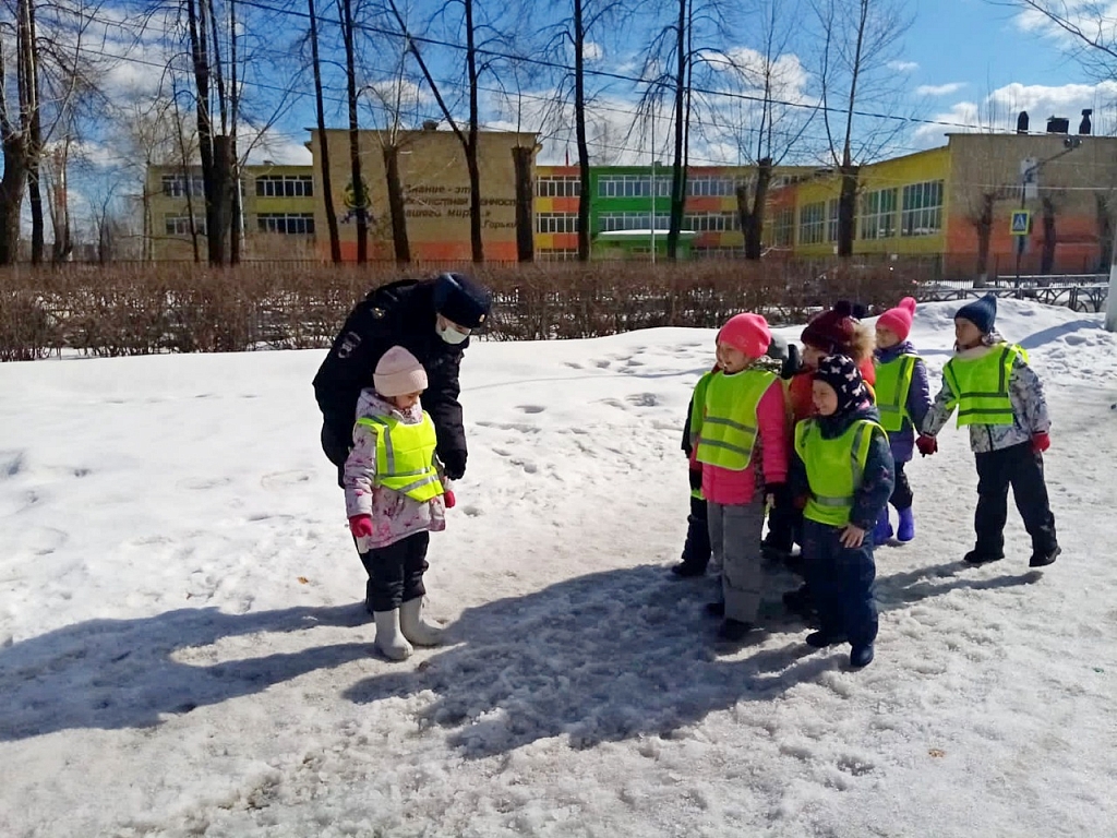 Сегодня, в рамках профилактического мероприятия «Внимание, каникулы!» сотрудники ГИБДД Первоуральска совместно с воспитателями структурного подразделения № 12 провели акцию «Шагающий автобус». Акция включает в себя пешеходную экскурсию по улично-дорожной сети вблизи образовательной организации, цель которой, знакомство детей с правилами поведения на участке дороги, ведущей в образовательную организацию, воспитание навыков осознанного поведения на улице. Участники экскурсии вышли к ближайшему нерегулируемому пешеходному переходу, где инспектор рассказала детям, как правильно и безопасно переходить проезжую часть, напомнила детям о том, как не безопасно выходить на проезжую часть из-за препятствий, таких как припаркованные машины, кусты. После чего колонна детей организованно, соблюдая Правила дорожного движения, пересекла проезжую часть. Ребята учились понимать значение дорожных знаков, закрепили правила безопасного поведения на дорогах и узнали, что такое световозвращающий элемент. Дошколята увлеченно участвовали в беседе, задавали вопросы и пообещали всегда соблюдать Правила дорожного движения.