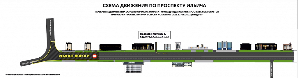 Начался четвертый этап реконструкции проспекта Ильича. Это участок от въезда во дворы возле дома №5 до перекрестка с пр.Космонавтов и ул.Ленина. Этот участок дороги перекрыт. Работы здесь должны продлиться неделю. В данных условиях для транспорта, движущегося по проспекту от площади в сторону ДВВС, доступны въезды во дворы домов №№5, 5-а, 5-б, 7, 7-а, 9, 9-а. В том числе въезд между домами №3/2 и №5. Движение по улице Емлина и проспекту Космонавтов будет открыто в две полосы.
