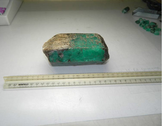На Малышевском месторождении найден изумруд весом 1 килограмм. Камень представляет собой исключительно красивый штуф изумруда. Имя уникальному гиганту еще не придумали, а оценкой его стоимости займутся специалисты Гохрана.