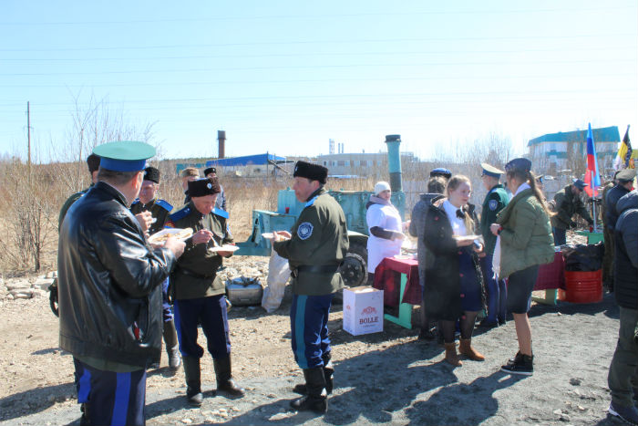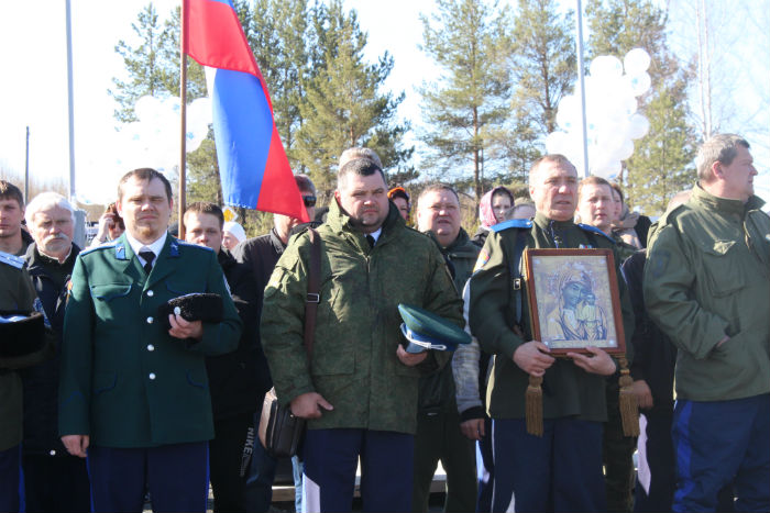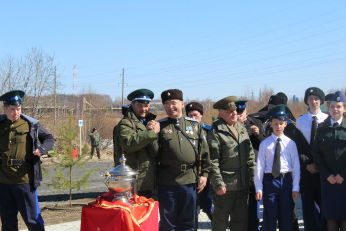 За веру, народ и Отечество. Совсем недавно в городе Кушва состоялось открытие и освящение Храма в честь Великомученика Георгия Победоносца. На мероприятие прибыли следующие представители казачьих хуторов и станиц Свердловской области под руководством атамана ЕОКО «Исетская линия» «Пятый отдел ОКВ» В. А. Волкова: - ХКО (хуторское казачье общество) «Первоуральский» - атаман Д. В. Захаров, - ХКО (хуторское казачье общество) «Чусовской» (в стадии регистрации) - атаман В. И. Повод, - ХКО (хуторское казачье общество) «Хутор Георгиевский» - атаман А. В. Нартов, - ХКО (хуторское казачье общество) «Хутор Верхотурье» - атаман В. М-К. Карецкас, - ХКО (хуторское казачье общество) «Станица Исетская» - атаман И. В. Терентьев, - ХКО (хуторское казачье общество) «Хутор Кушвинский» - атаман А. В. Куделько, - ХКО (хуторское казачье общество) «Атаманова Гора» - атаман В. Н. Фролов, - ХКО (хуторское казачье общество) «Тугулымское» - атаман В. А. Филиппов, - ХКО (хуторское казачье общество) «Бунарское» - атаман В. Н. Максименко, - ХКО (хуторское казачье общество) «Хутор Нейвинский» - атаман А. Н. Устинов, - ХКО (хуторское казачье общество) «Станица Тавдинская» - атаман А. П. Васьков, - ХКО (хуторское казачье общество) «Хутор Северный» - атаман Е. В. Бунтов, - ХКО (хуторское казачье общество) «Хутор Калиновский» - атаман Г. А. Соболев, - ХКО (хуторское казачье общество) «Лесной» - атаман О. И. Елисов, - ХКО (хуторское казачье общество) «Хутор Невьянский» - атаман В. В. Щукин, - ХКО (хуторское казачье общество) «Хутор Императорский» - атаман В. В. Трофимов, - ХКО (хуторское казачье общество) «Хутор Верхнепышминский» - атаман Е. А. Токарев, - ХКО (хуторское казачье общество) «Хутор Манчажский» (в стадии регистрации) - атаман П. С. Кузнецов, - ХКО (хуторское казачье общество) «Рассвет» (в стадии регистрации) - атаман С. В. Шапков, - ХКО (хуторское казачье общество) «Гусевка» (в стадии регистрации) - атаман В. А. Лихоманов. Освящение Храма в честь Великомученика Георгия Победоносца проводил епископ Нижнетагильский и Невьянский Иннокентий. Перед мероприятием состоялось общее построение, на котором присутствовали: - казаки вышеперечисленных ХКО с хоругви и знамёнами, - казачки, - казачьи кадетские военно-патриотические клубы. После необходимой церемонии проводился ритуал тайной исповеди прямо возле Храма. Люди выстраивались в огромную очередь, и казалось, нет ей ни конца, ни края. После церковного ритуала, люди вошли внутрь Храма. Среди священников резко выделялся один батюшка. Это был сильный контраст на фоне всего благолепия. В силу своего возраста, он стоял непоколебимо в общей массе народа. Казаки отстояли всю церковную службу под сильным ветром и в холодную погоду. После всего состоялась церемония посвящения в казаки, людей, которые прошли испытательный срок. По правилам ими была дана присяга и исполнен атаманский наказ кнутом. Ну а затем было братание и конечно, прекрасный обед из военно-полевой кухни. Гречневая каша с мясом была великолепна. После официальной церемонии состоялось выступление народных казачьих коллективов, казачьих детских ансамблей, которые исполнили для людей церковные и народное песнопение, показав своё безукоризненное мастерство. Естественно было показано и мастерское владение клинком, с элементами жонглирования. Валерий Сивоконь. |