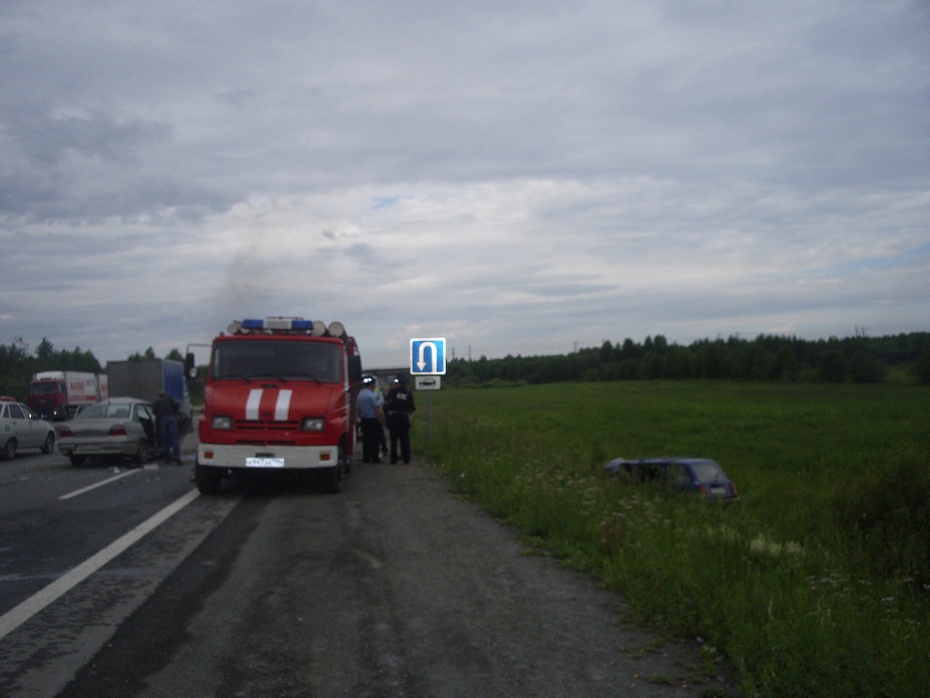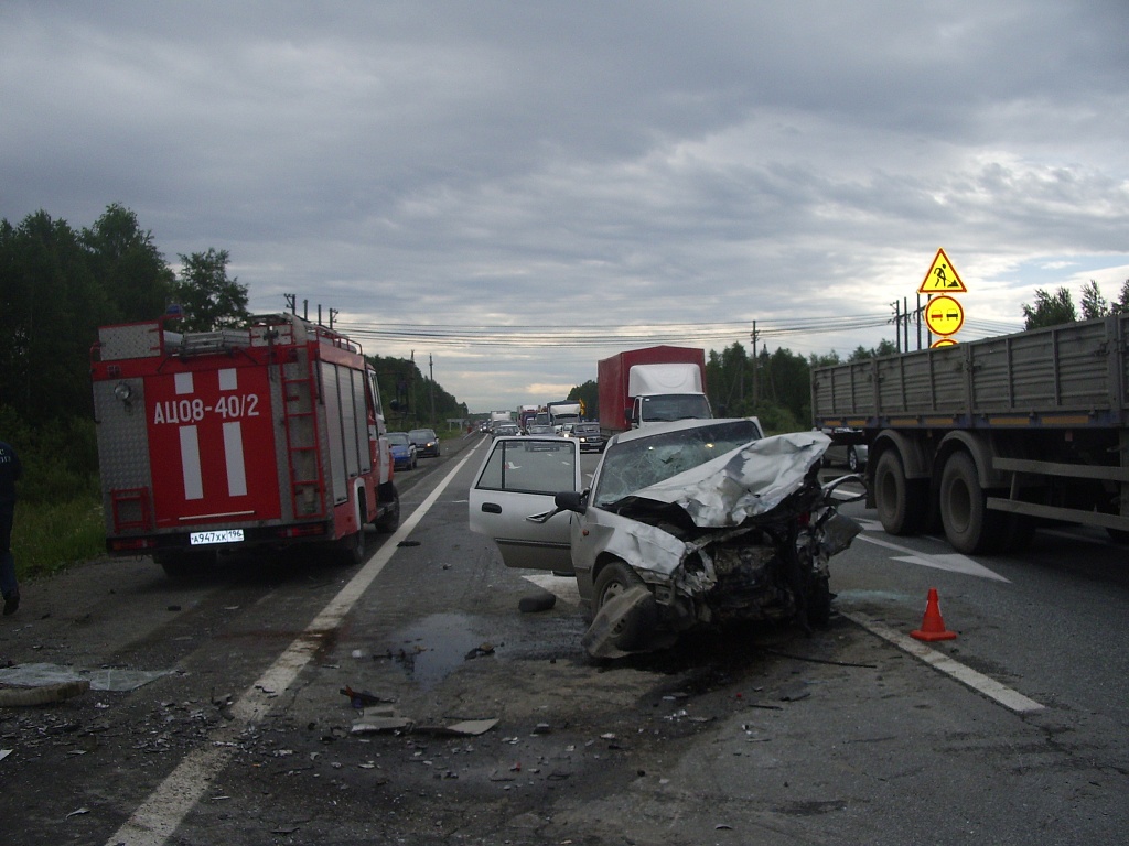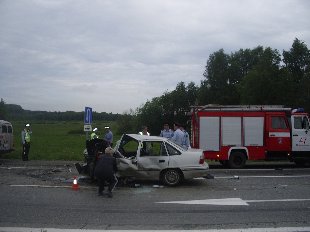 Сегодня, 25 июня 9:15 на 334 км автодороги Пермь-Екатеринбург произошло дорожно-транспортное происшествие с участием 3-х машин. Водитель автомобиля Дэу "Нексия" двигаясь со стороны Перми в направлении Екатеринбурга при перестроении допустил столкновение с попутно двигающимся транспортным средством, после чего Дэу выбросило на встречную полосу движения, где произошло лобовое столкновение с ВАЗ-2104. В результате ДТП водитель отечественной легковушки, мужчина 1949 г.р. погиб на месте, водитель и три пассажира Нексии госпитализированы в ГБ №1 г. Первоуральска.