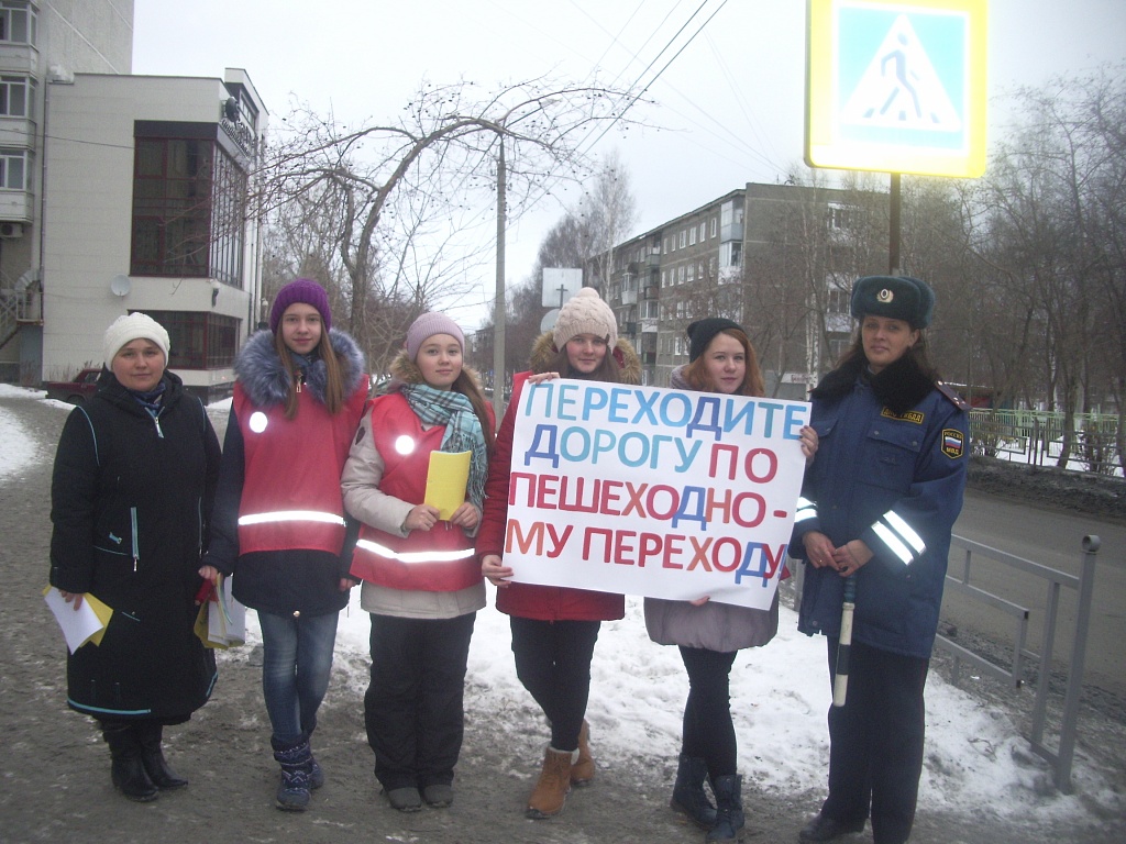 Учащиеся школы № 1 и сотрудники Первоуральской ГИБДД призывали горожан быть внимательными на дорогах