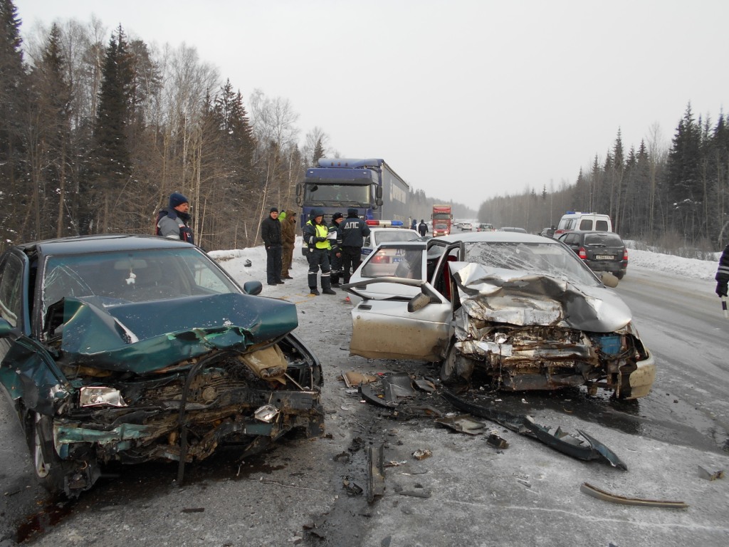 Пять человек пострадали в столкновении двух автомобилей на трассе Пермь-Екатеринбург