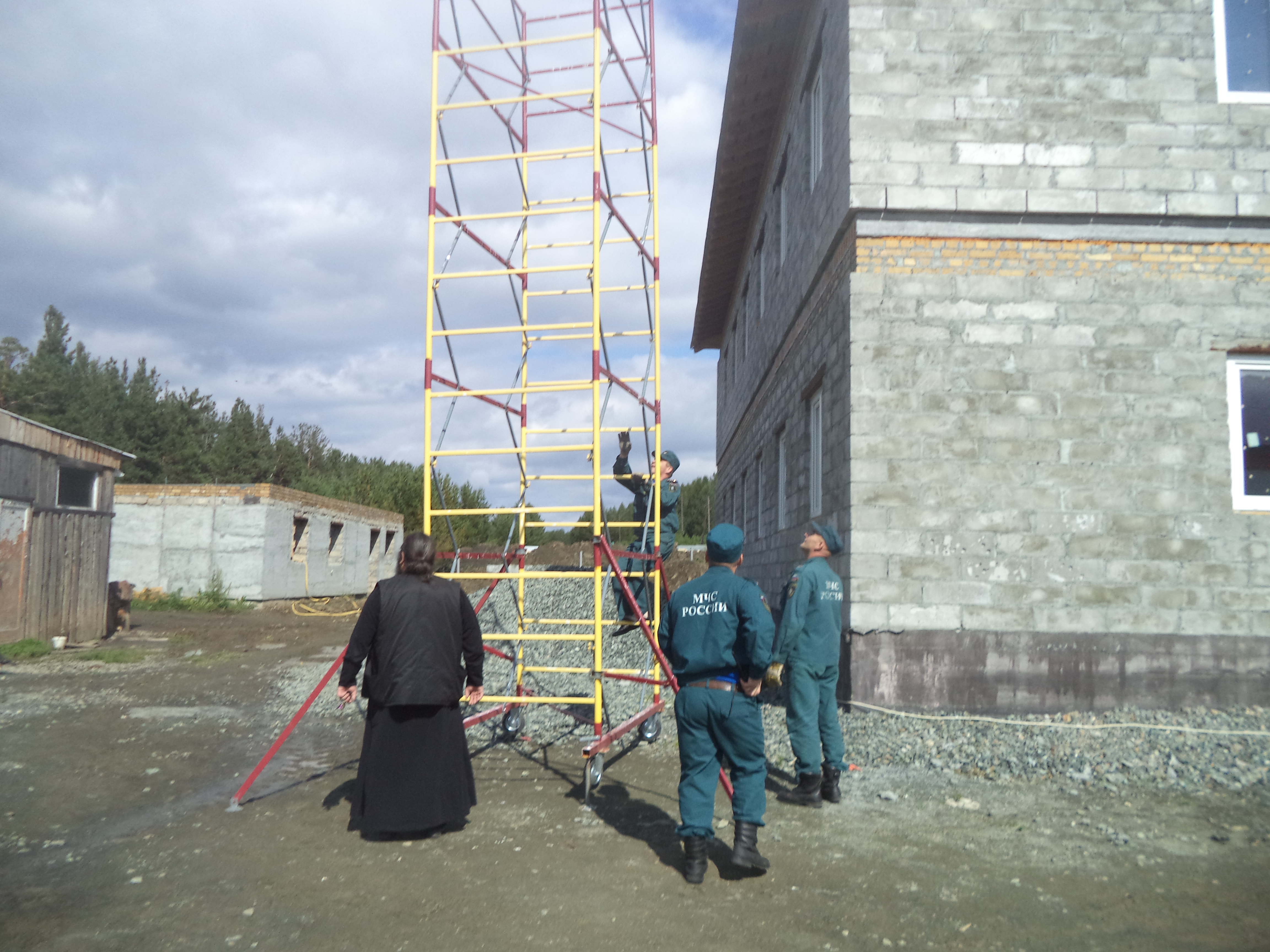 Здание воскресной школы при храме Во имя святой великомученицы Екатерины г.Первоуральска стремительно растёт, а рабочих рук на выполнение подсобных работ не хватает. Здесь и пригодилась помощь личного состава 2 караула 47ПЧ 10 ОФПС по Свердловской области. На этот раз (а это уже не первая помощь приходу) настоятель храма Во имя святой великомученицы Екатерины протоиерей Иаков Айсин благословил пожарных выполнить свойственную их роду профессии работу – разобрать строительно-монтажную лестницу, ведущую на 2й этаж здания школы. Ребятам не привыкать к работе на высоте, с задачей они справились успешно, сообщает ОНД ГО Первоуральск. Материалы по теме: