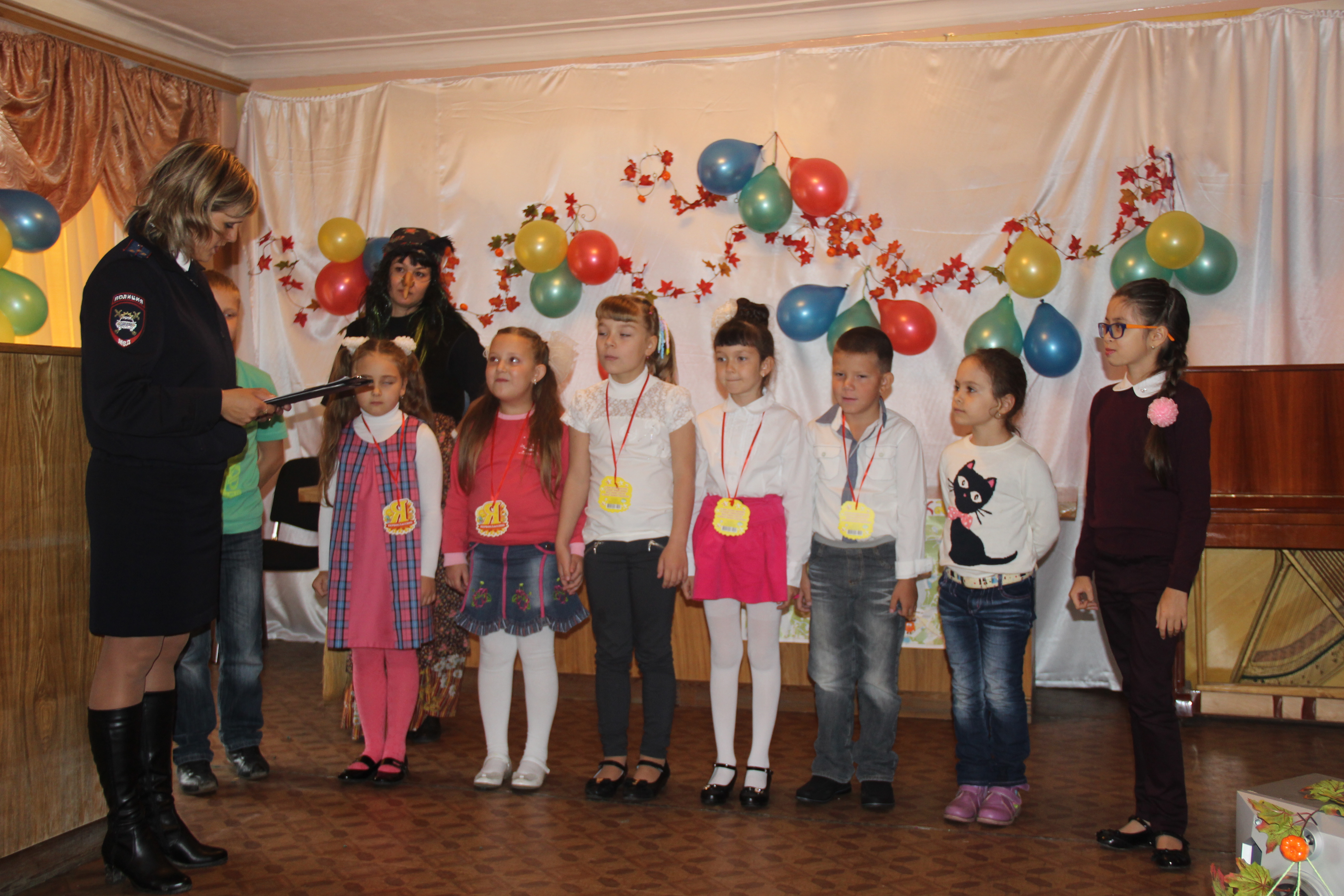 Накануне, в актовом зале здания Отдела МВД России по городу Первоуральску проведен замечательный праздник для детей сотрудников, которые в первый раз сядут за школьные парты. С напутственным словом перед детками и их родителями выступил начальник ОМВД России по городу Первоуральску полковник полиции Олег Владимирович Грехов, пожелав детям успехов в учебе, отличных оценок, больших достижений и конечно безопасной дороги в школу. Для будущих первоклассников сотрудниками ГИБДД в игровой форме была организована развлекательная программа «Путешествие по городу Первосветофорску». Инспектор по пропаганде безопасности дорожного движения Надежда Бикбаева в костюме Бабы-Яги на протяжении всего путешествия пыталась запутать детей, но ребята смогли показать свои знания безопасного поведения на улицах и дорогах города, грамотно отвечая на подготовленные задания. В конце путешествия детей ждали специально подготовленные подарки – плакаты с расписанием на дорожную тематику и маршрутные листы «Дом-школа-дом». Еще одним приятные моментом на торжественном мероприятии стало награждение участников городского конкурса по безопасности дорожного движения, который проходил в течение лета на телеканале «Евразия». С экранов телевизоров дети обращались к участникам дорожного движения с призывами быть внимательными на улицах и дорогах, уважать себя и других, общими усилиями сделать дороги города безопасными. Всем ребятам, участвующим в конкурсе, были вручены благодарности и призы. Не остались без внимания и дети погибших сотрудников, они также были приглашены на детский праздник, где получили от руководства первоуральской полиции приятные подарки и сладкие сюрпризы. Приглашенные на праздник детишки остались довольны увлекательным мероприятием и полезными подарками. Отдел МВД России по городу Первоуральску Материалы по теме: