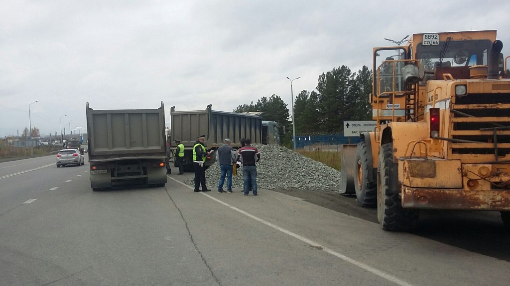 Под Первоуральском водитель грузовика высыпал щебень на дорогу