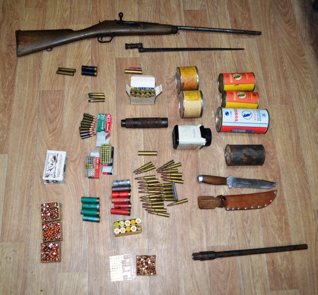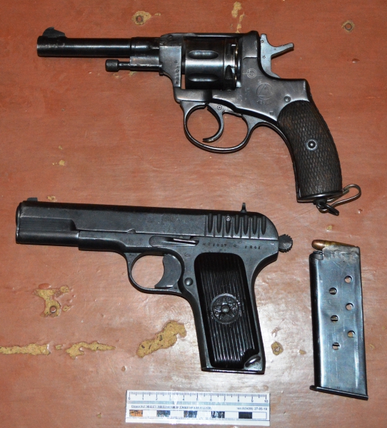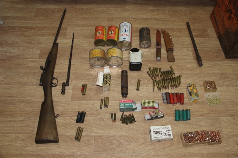 В рамках оперативно-профилактического мероприятия «Арсенал» полицейские в Первоуральске изъяли у местного жителя незаконно хранящиеся оружие и боеприпасы. Как рассказали Первоуральск.РФ в пресс-службе Отдела МВД России по г. Первоуральску, накануне около 20.00 часов сотрудниками уголовного розыска ОМВД России по городу Первоуральску в ходе проведения оперативно-розыскных мероприятий был задержан 50-летний ранее не судимый местный житель, который по разным адресам хранил оружие и боеприпасы. На место происшествия выезжала следственно-оперативная группа под руководством начальник полиции Павла Прокопчика, сотрудники уголовного розыска, дознаватель, эксперт-криминалист, инспектор отделения лицензионно-разрешительной работы. В квартире дома в переулке Бурильщиков, где он проживал с сожительницей, оперативники обнаружили порядка 60 патронов калибра 5,6 мм и шашку в ножнах. Кроме того, за нарушение правил хранения зарегистрированного гражданского оружия стражами порядка был изъят карабин «Сайга», 40 патронов, гладкоствольное ружье модели ТОЗ-34Р и 6 патронов к нему. Также мужчина добровольно выдал пакет, в котором находились револьвер Наган-С 1944 года выпуска и пистолет ТТ 1941 года выпуска, две кабуры и два ремня к ним. Для разбирательства гражданина доставили в дежурную часть полиции Первоуральска. В ходе дальнейших мероприятий сотрудниками уголовного розыска было установлено, что незарегистрированное оружие мужчина может хранить в доме супруги на улице Бурильщиков и у отца, проживающего в деревне Пермяки Шалинского района. Незамедлительно по указанным адресам выехали оперативники, которые обнаружили и изъяли более 150 патронов к нарезному и гладкоствольному оружию, части и механизмы для огнестрельного оружия, в том числе, предмет, похожий на прибор для бесшумной стрельбы, а также 7 банок с порохом. В настоящее время по данному факту в полиции Первоуральска проводится проверка, изъятые предметы направлены для установления принадлежности к огнестрельному оружию и боеприпасов. По результатам проведенного исследования будет принято соответствующее процессуальное решение. Материалы по теме: