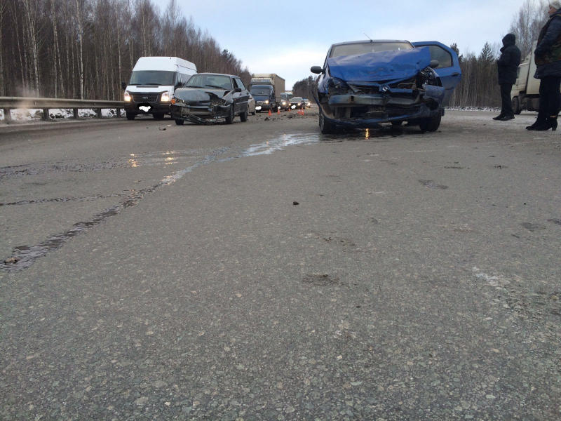 02.03.2016г. на 326км автодороги Пермь-Екатеринбург произошло несколько дорожно-транспортных происшествий. В 07.15 между автомобилем ВАЗ-2112 под управлением водителя 1982г.р. (стаж 1 год) и автомобилем Сузуки Гранд Витара под управлением мужчины (стаж 29 лет) произошло столкновение. В обьяснениях участников имеются противоречивые показания. Оба транспортных средства двигались со стороны г. Перми в сторону г. Екатеринбурга, виновник ДТП устанавливается. В 7.20 на этом же участке дороги водитель, мужчина 1978 г.р. (стаж 21год), управляя автомобилем Ниссан Х-Трейл не учел дистанцию до движещегося впереди транспортного средства, допустил столкновение с автомашиной ВАЗ-21140 под управлением мужчины 1963г.р. (стаж 33 года). В последующем автомобиль ВАЗ-21140 откинуло на а/м ВАЗ-2112. В 7.23 на этом же участке дороги водитель 1978г.р. (стаж 21 год), управляя автомобилем Рено-Логан, не учел дистанцию до движущегося впереди транспортного средства, допустил столкновение с а/м Ниссан-Х-Трейл. В данных ДТП никто не пострадал. Причиной ДТП послужило отвлечение внимания других участников дорожного движения на ДТП с автомобилями ВАЗ-2112 и автомашиной Сузуки Гранд Витара. Стоит отметить, что в салоне автомобиля Рено-Логан перевозился трехгодовалый ребенок, который в ДТП не пострадал благодаря тому, что находился в детском удерживающем устройстве, которое соответствовало росту и весу малыша.