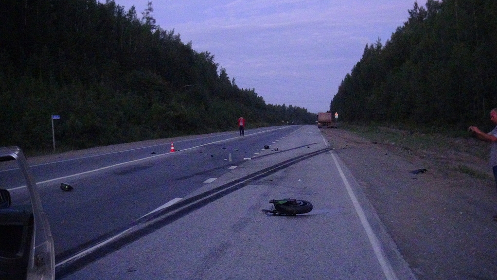 На трассе под Первоуральском мотоциклист столкнулся с Газелью и залетел под фуру.