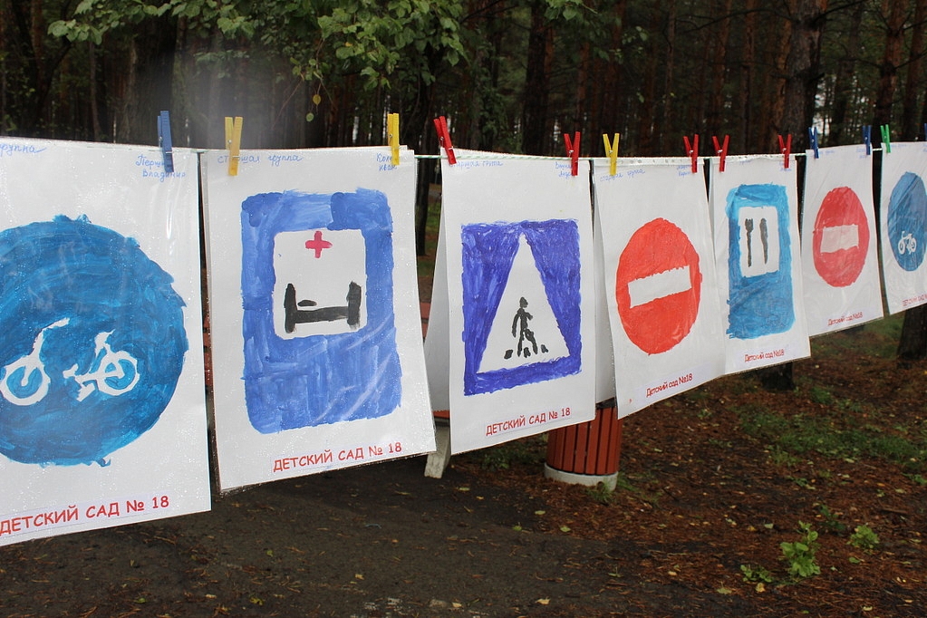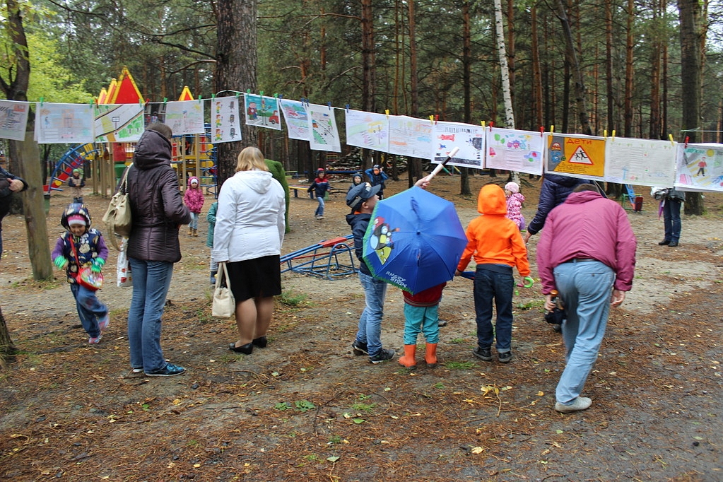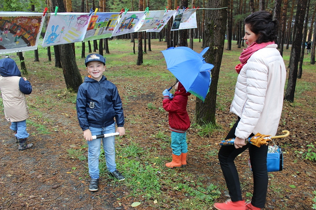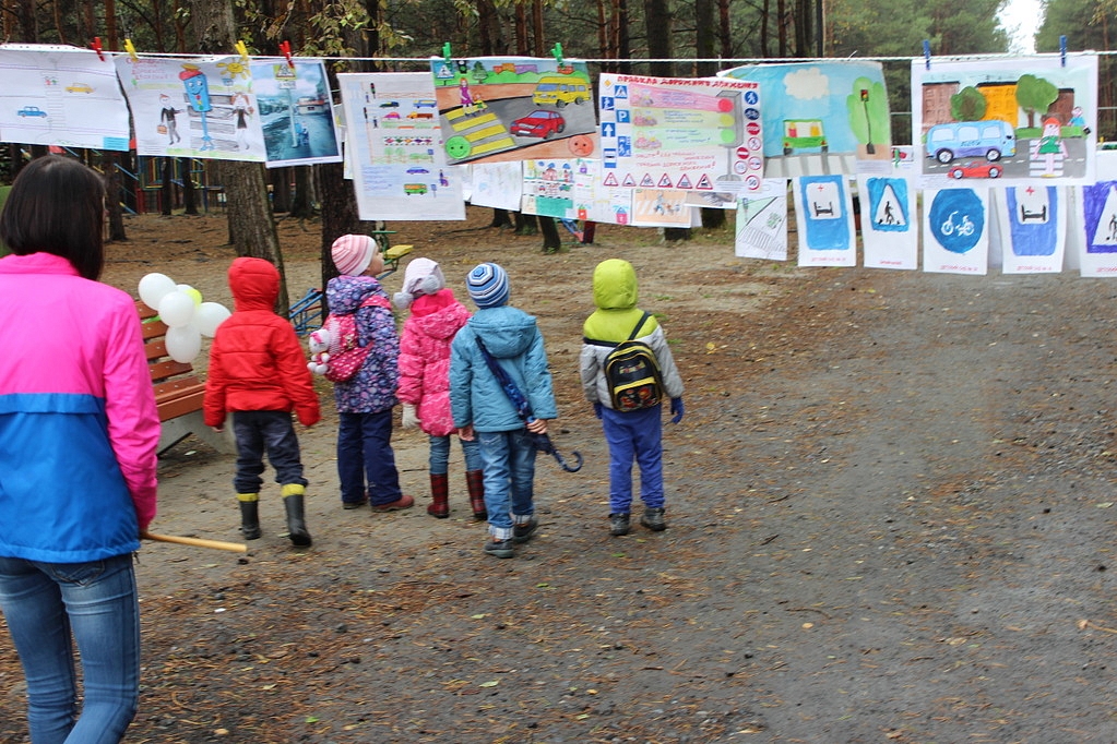 В начале нового учебного года в ГО Первоуральск проведена серия профилактических мероприятий, цель которых – помочь детям в период адаптации после летних каникул вспомнить правила дорожного движения. Одним из таких мероприятий стала выставка детских рисунков и фотографий, которая состоялась в парке культуры и отдыха. Можно сказать, что эта выставка - результат работы всего ГО Первоуральск. Инициатива провести мероприятие в таком формате принадлежит ГИБДД города, в организации же приняли участие управление образования, школы, детские сады, добровольная народная дружина, руководство и работники парка, инициативные родители... в общем, всем миром. Не смотря на пасмурную и временами дождливую погоду, выставка не осталась без внимания. На выставке было представлено более двухсот рисунков и фотографий. Работы с интересом рассматривали и обсуждали как дети, так и взрослые. Ребята делись друг с другом впечатлениями, рассказывали, как они готовились к этому мероприятию, как придумывали сюжеты и воплощали их в жизнь. Здесь же состоялся большой интерактив с ромашкой, в рамках всероссийской эстафеты «Дорога – символ жизни!», в котором могли поучаствовать все желающие. Самыми же активными участниками эстафеты стали воспитанники и педагоги МАДОУ №39. Ромашка была необычная - из воздушных шаров! Ребята сами, а кто не умеет, с помощью воспитателя писали на лепестках – воздушных шариках, что нужно сделать для безопасности на дорогах. Кроме цветка из воздушных шаров, все желающие могли обзавестись ромашкой на щечке – аквагрим в виде символа всероссийской эстафеты. Остается пожелать всем нашим дорогим художникам, их родителям, педагогам и просто жителям города, чтоб правила дорожного движения оберегали Вас на дорогах! ОГИБДД города Первоуральска. Материалы по теме: