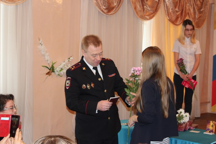 В преддверии самого замечательного праздника весны, в рамках акции «8 Марта – в каждый дом» полицейские Первоуральска организовали и провели праздничный концерт, куда пригласили вдов и матерей сотрудников, погибших при исполнении служебного долга. Торжественное мероприятие началось с поздравления самого главного полицейского Первоуральска полковника Олега Грехова, который искренне пожелал добра и любви самой прекрасной половине человечества. «Чем больше будет доброты и любви, тем увереннее и сильнее будет наша нация, добиваясь успеха во всех сферах жизни. С праздником, мои дорогие женщины! », - отметил полковник Грехов. Очень трогательным моментом праздника стало поздравление вдов и матерей сотрудников, которые отдали свои жизни, оставшись верными служебному долгу до конца. Цветы, конфеты и теплые пожелания подарили этим замечательным женщинам - Людмиле Умыцкой, Алевтине Кукаркиой, Ольге и Людмиле Михайловым, Ирине Гайнетдиновой и Елене Нурмухаметовой. На плечи этих хрупких, но удивительно сильных духом женщин, легли тяжелейшие жизненные испытания, но они, как и прежде, прекрасны и добры. В торжественной обстановке полицейские поздравляли сотрудниц и женщин - ветеранов с юбилейными датами, вручали медали, звания и подарки своим коллегам – представительницам прекрасного пола. Весь праздничный концерт зрителей радовали замечательными выступлениями первоуральские творческие коллективы. Молодое поколение также не остались без внимания. Четверо молодых первоуралочек получили впервые паспорт гражданина Российской Федерации. Девушки признались, что для каждой из них это незабываемое событие в жизни, ведь свой самый главный документ они получили в такой приятной и торжественной атмосфере. По доброй традиции, после концерта, всем присутствующим в зале женщинам коллеги-мужчины вручили цветы. Руководство и личный состав Первоуральского отдела МВД поздравляет всех женщин с этим замечательным весенним праздником! Пусть в этот день все улыбки будут искренними, все пожелания сбываются, открываются новые возможности и реализуются все мечты. Пусть соседи радуются встрече с вами, друзья гордятся вашей дружбой, а любовь окутывает всю вашу жизнь. Отдел МВД России по городу Первоуральску