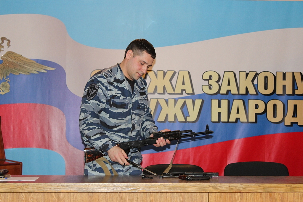 В рамках акции «Студенческий десант» будущие юристы побывали в Первоуральской полицииЕжегодно, в преддверии Российского Дня студента, МВД России проводит общероссийскую акцию «Студенческий десант», основной целью которого является популяризация деятельности органов внутренних дел. Полицейские Первоуральска удовольствием принимают участие в этом мероприятии, поскольку им предоставляется возможность пообщаться с целевой аудиторией. В этом году в гости к своим будущим коллегам пришли студенты Первоуральского металлургического колледжа, обучающиеся по специальности «Право и социальное обеспечение» в сопровождении педагога правовых дисциплин Надежды Григорьевны Светлаковой. Ежегодно, студенты этого колледжа проходят практику в различных подразделениях полиции и, как показывает многолетний опыт, большинство выпускников в дальнейшем поступают на службу в органы внутренних дел. Полицейские традиционно организовали для ребят самые интересные выступления специалистов разных подразделений. Заместитель начальника экспертно-криминалистического отдела майор полиции Юрий Дрокин рассказал гостям как эксперты-криминалисты собирают и исследуют различные следы с мест преступлений, какие существуют виды криминалистических экспертиз и какие из них выполняют в Первоуральском отделе МВД. Юрий Викторович продемонстрировал присутствующим главный инструмент эксперта - криминалистический чемодан, подробно рассказал о его содержимом, начиная от фотоаппарата, заканчивая слесарным инструментом. Кроме того, эксперт-криминалист поведал студентам, в каких учебных заведениях нашей страны можно освоить эту интересную и очень нужную профессию. Следующим выступающим стал старший инспектор направления мобилизационной подготовки - старший лейтенант внутренней службы Максим Деркач, настоящий боевой офицер, неоднократно выполнял служебные задачи на территории Северо-Кавказского региона, принимал участие в контртеррористических операциях. Максим Андреевич продемонстрировал присутствующим сборку и разборку учебного оружия АК-74 и пистолета Макарова. Кратко рассказал о частях и механизмах боевого оружии, правовые основы его применения. Ответил на многочисленные вопросы студентов о службе в органах внутренних дел и призвал молодых ребят к достойному служению родине. Далее, каждому желающему была предоставлена возможность не только подержать в руках учебное оружие, но и лично произвести сборку-разборку оружия. Среди студентов нашлись несколько молодых ребят, которые достаточно уверенно справились с задачей, так как проходили специальную подготовку в военно-патриотических клубах. Старший специалист по работе с личным составом майор внутренней службы Елена Пьянкова рассказала студентам о преимуществах учебы в образовательных учреждениях системы МВД России, где готовят различных специалистов для службы в полиции. Это Уральский юридический институт МВД России, Волгоградская академия и Воронежский институт МВД России. Подробно рассказала о правилах приема, условиях обучения, гарантиях и многочисленных преимуществах, предоставляемых курсантом ВУЗов. Студентам розданы буклеты с подробной информацией об указанных учебных заведениях. Будущие юристы с большим вниманием и интересом вникали в специфику напряженной по