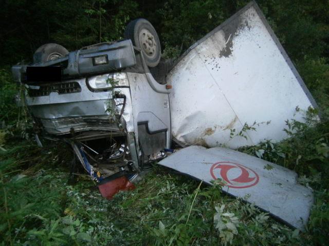 Сегодня в 5:20 на 13 км автодороги «Шамары-Роща» водитель автомобиля ГОЛАЗ, проезжая опасный поворот, не выбрал безопасную скорость движения, допустил съезд с проезжей части и опрокидывание.