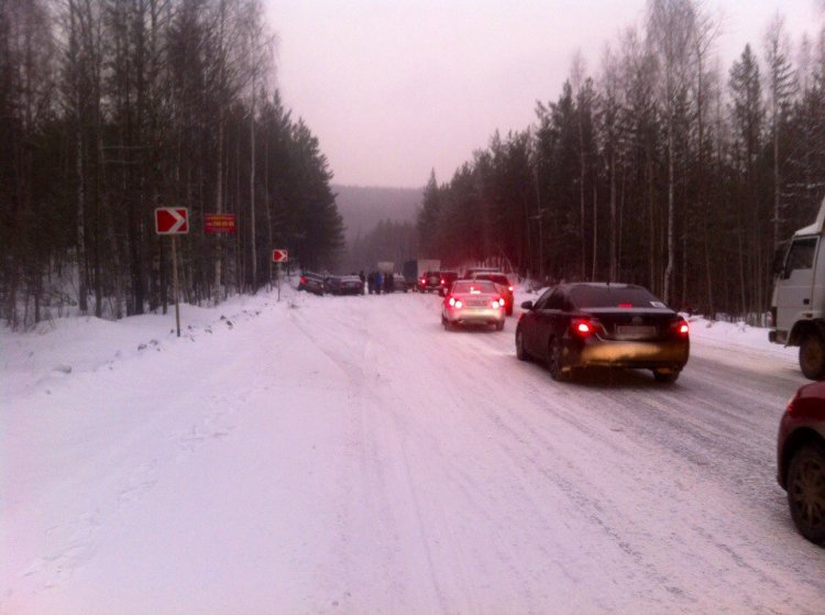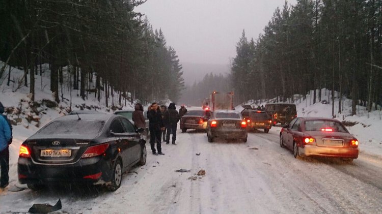 Сильный снегопад привёл к большому количеству ДТП на Серовском тракте, который соединяет Екатеринбург и Нижний Тагил. Очевидцы говорят, что из-за скользкой дороги произошло несколько серьёзных аварий. В результате движение на нескольких участках было практически парализовано. Одно из ДТП произошло неподалёку от Новоуральска – автоцистерна перевернулась и улетела в кювет. – Водила летел, как угорелый, перед эвакуатором снёс две легковушки и сам воткнулся в болото. Эвакуатор стоял с мигалками, аварийные конусы (лично сам ставил) выставлены. Все участники движения увидели и объехали, кроме одного торопыги, – описывает ситуацию очевидец Сергей Нижник. – В 10:50 на 321-м километре водитель тягача неверно выбрал дистанцию до впереди идущих автомобилей Toyota и "Волга", допустил столкновение. Данная авария также произошла на крайней полосе, а потому вторая полоса оставалась свободной. На месте обеих аварий работали несколько экипажей ДПС, которые приняли все меры для стабилизации дорожной обстановки и безопасности граждан, – прокомментировали аварию в управлении ГИБДД по Свердловской области. Ещё одна авария случилась на Серовском тракте в сторону Екатеринбурга в нескольких километрах от Верхней Пышмы. – На проезжей части и в кюветах несколько легковых машин, часть - с серьёзной деформацией кузова. Перед местом ДТП образовался затор, на преодоление которого ушло 5-7 минут. Жертв нет. Скорее всего, водители не соблюли скоростной режим и необходимую дистанцию. Первую машину в потоке занесло, закрутило, задело рядом идущее, и ещё сзади не успели притормозить, – рассказал E1.RU очевидец Дмитрий Авдеев. – Сегодня в 9:15 на 315-м километре дороги Екатеринбург – Серов (обратное направление) произошло ДТП с участием девяти автомобилей. Учитывая, что авария произошла в крайнем правом ряду и на обочине, левая полоса оставалась свободной для движения, – пояснили в областном управлении ГИБДД.