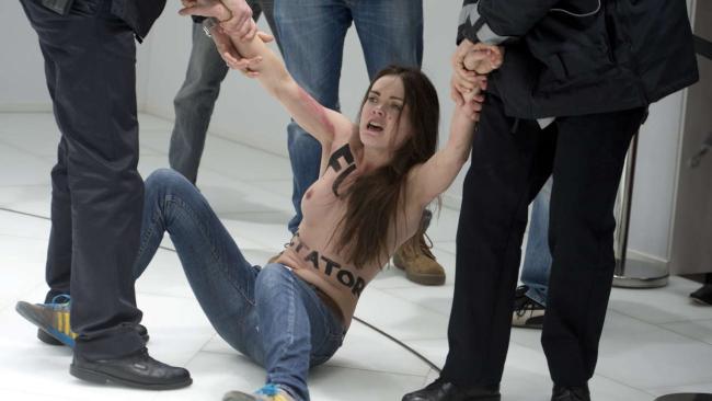Активистки из украинского движения Femen организовали очередную "обнаженную" акцию на промышленной ярмарке в Ганновере. Активистки украинского незарегистрированного общественно-политического движения FEMEN устроили акцию на промышленной ярмарке в Ганновере в то время, когда ее осматривали канцлер ФРГ Ангела Меркель и президент РФ Владимир Путин, передает ИТАР-ТАСС. В тот момент, когда Путин и Меркель стояли у стенда компании Volkswagen, несколько девушек, которые находились среди многочисленных журналистов, прорвались за ограждение, разделись по пояс и стали выкрикивать нецензурные лозунги на английском языке. На спине одной девушки было написано «Иди на х*й, Путин», а на груди, как отмечает n-tv, — «Fuck dictator». Охрана задержала девушек. Те продолжали выкрикивать лозунги, но Путин и Меркель, не обращая на них внимания, неторопливо перешли в следующий зал, сообщают агентства. Однако на опубликованных немецким изданием Bild снимках видно, что и Меркель, и Путин заметили акцию. На одном из фото канцлер ФРГ и вовсе выглядит шокированной. В отличие от Путина, который "оценил" акцию феминисток, подняв вверх большие пальцы. Позже российский лидер на совместной пресс-конференции с канцлером ФРГ прокомментировал скандальную выходку Femen. "Что касается акции – она мне понравилась, – сказал Путин, отвечая на вопрос одного из журналистов. - В принципе, мы знали. Что такая акция готовится. Скажите спасибо украинским девушкам, они вам помогают раскрутить ярмарку". "Что они там кричали, честно говоря, я не очень расслышал, потому что секьюрити работают очень жестко. Такие здоровые лбы навалились на девчонок. Это, мне кажется, неправильно, можно было бы помягче с ними обращаться", - цитирует российского президента "Интерфакс". Вместе с тем российский лидер отметил, что все-таки «по политическим вопросам лучше дискутировать в одетом виде». Это уже не первая акция FEMEN во время зарубежных визитов главы российского государства. В Брюсселе в декабре прошлого года во время саммита Россия-ЕС активистки этого движения устроили акцию протеста по случаю визита Владимира Путина. Тогда девушки призвали лидеров Евросоюза прекратить политические, экономические и культурные контакты с Москвой. Местная полиция задержала четырех участниц акции.